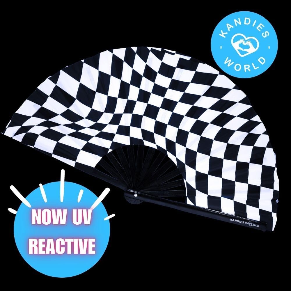 Kandies World Custom Festival Folding Hand Fan - Unique Designs, Made of Bamboo, Clacking Sound, Lightweight - Perfect Rave and Festival Accessory!