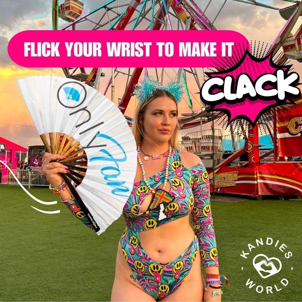 Kandies World UV Reactive Custom Festival Folding Hand Fan - Unique Designs, Made of Bamboo, Clacking Sound, Lightweight - Perfect Rave and Festival Accessory!