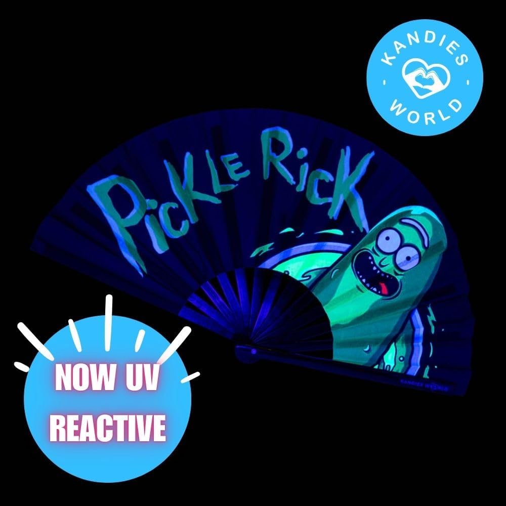 Kandies World UV Reactive Custom Festival Folding Hand Fan - Unique Designs, Made of Bamboo, Clacking Sound, Lightweight - Perfect Rave and Festival Accessory!