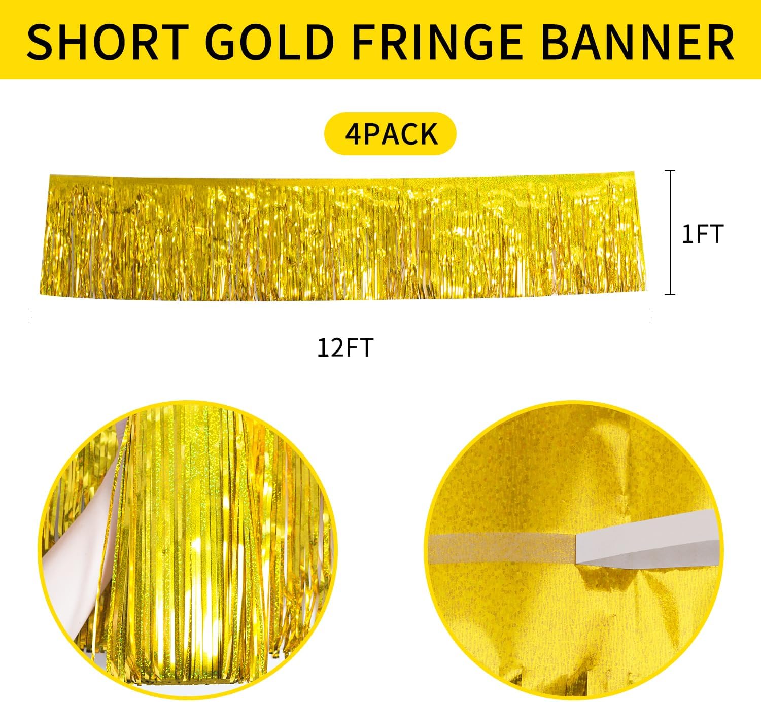- Easy Use: Simply remove the adhesive tape protective film and apply this gold tinsel foil fringe garland on walls, parade floats, tables - anywhere you desire to illuminate your party atmosphere! Please avoid sticking the fringe banner on uneven or stained walls to prevent detachment.