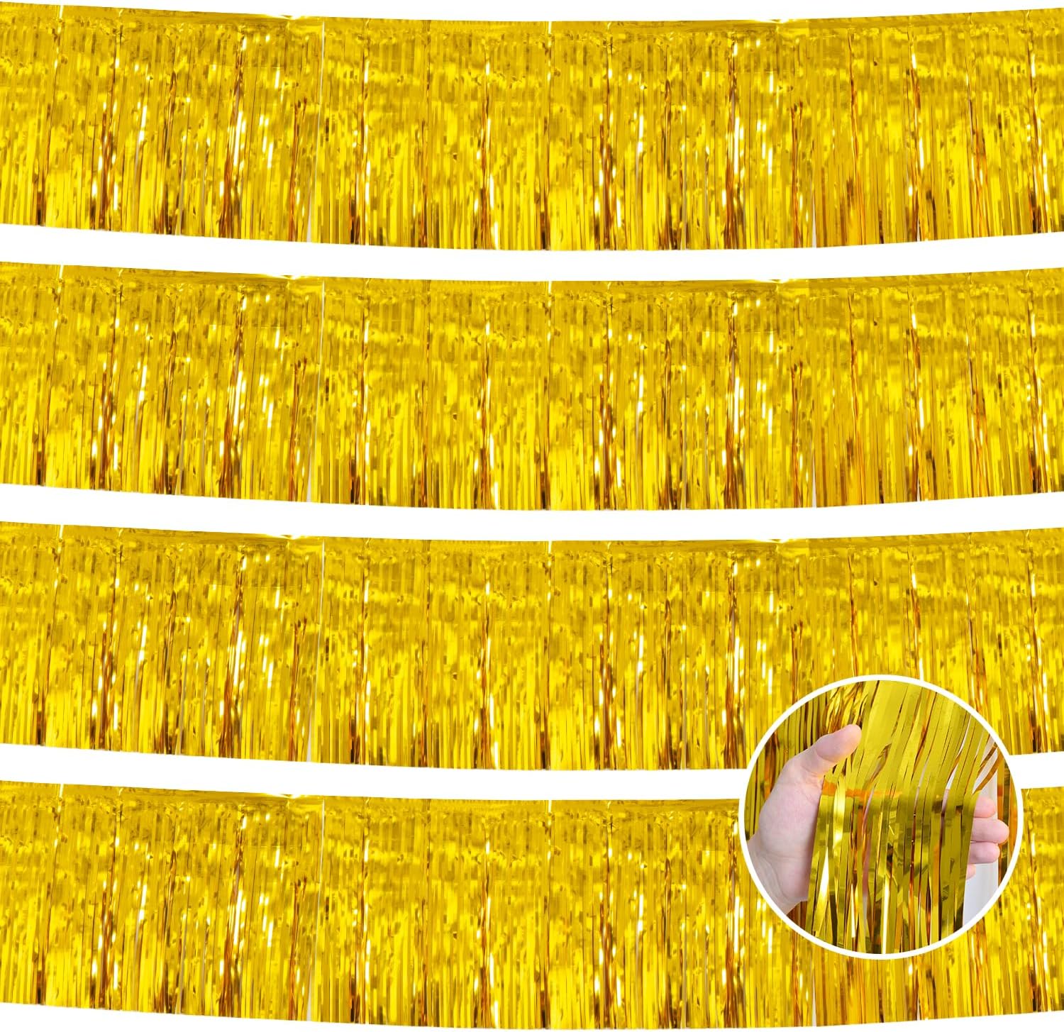 Gold Birthday Decorations Tinsel Garland Parade Float Decorations for Trailer 4Pack 12FT Christmas Party Decor Ceiling Fringe Banner Backdrop for Streamers Party Decorations