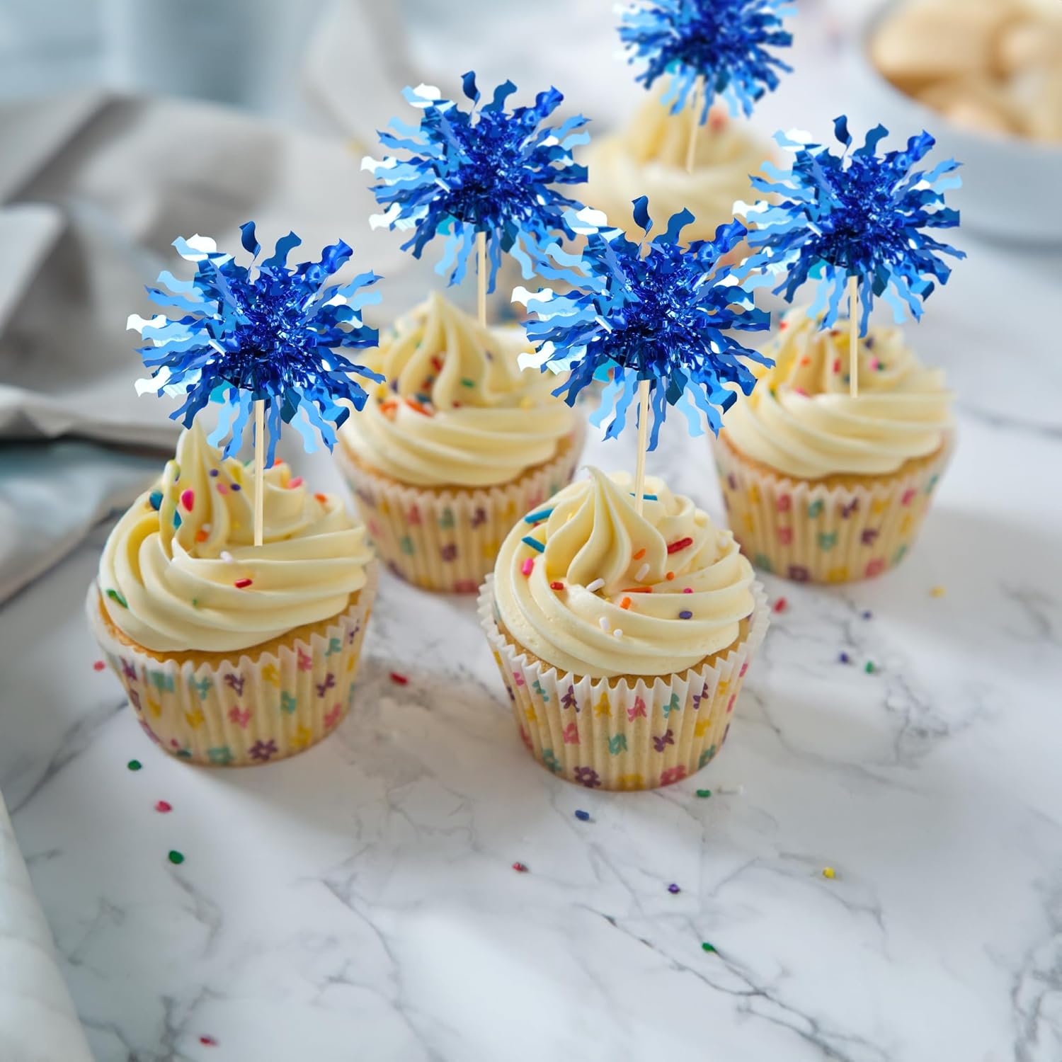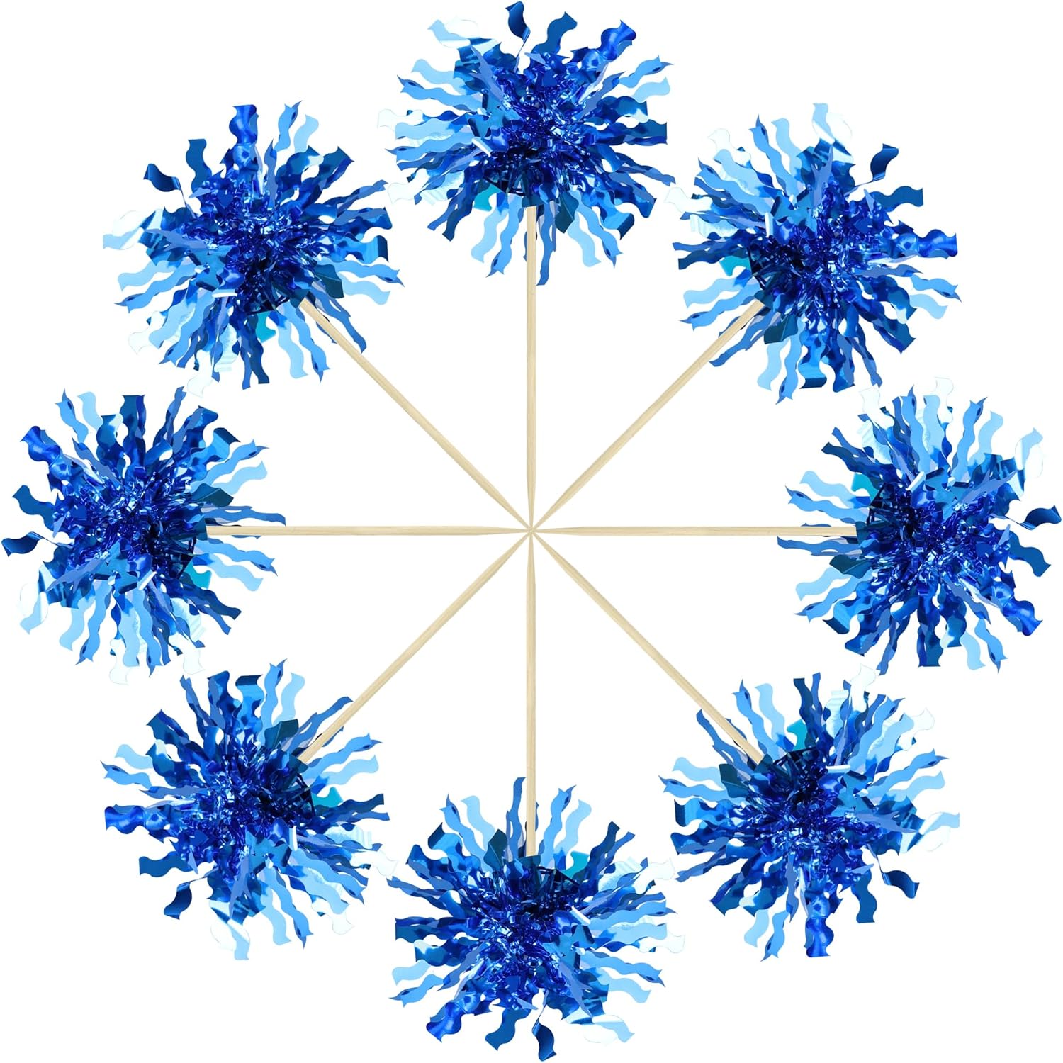 Gyufise 30Pcs Foil Firework Cupcake Toppers Happy Birthday Cake Toppers Sparkle Tinsel Flower Drink Stirrers Cocktail Food Fruit Toothpicks for Valentine's Day Party Supplies Blue