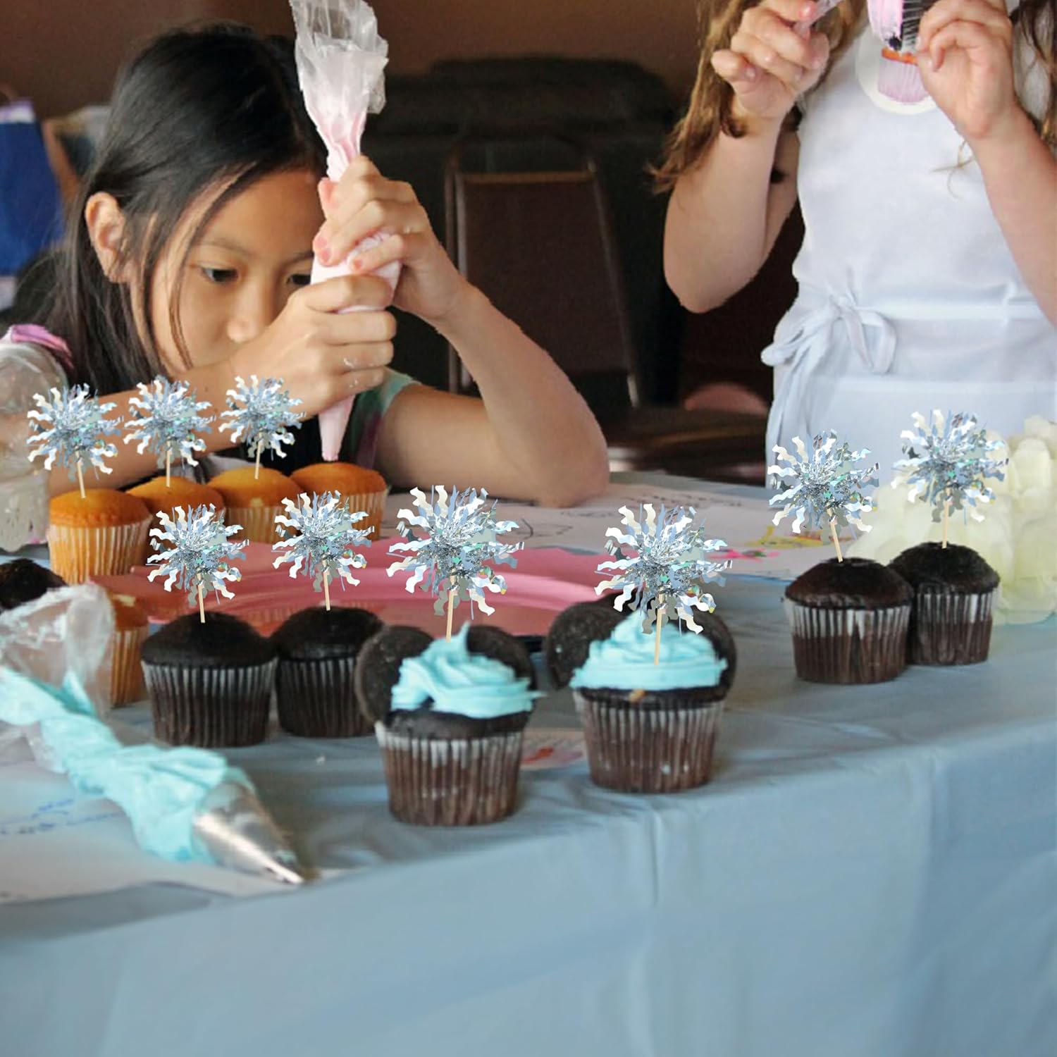 Gyufise 30Pcs Foil Firework Cupcake Toppers Sparkle Tinsel Cake Toppers Tinsel Drink Cake Decoration Cocktail Picks for Birthday Wedding Graduation Party Supplies Silver
