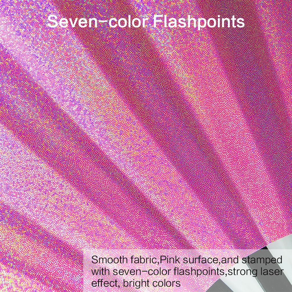 Large Rave Fan, Clack Folding Hand Fan with Premium Fabric, Thick Bamboo Frame for Men Women Gift for EDM, Festival, Club, Party, Dance, Decoration (Lridescent Pink, 11")