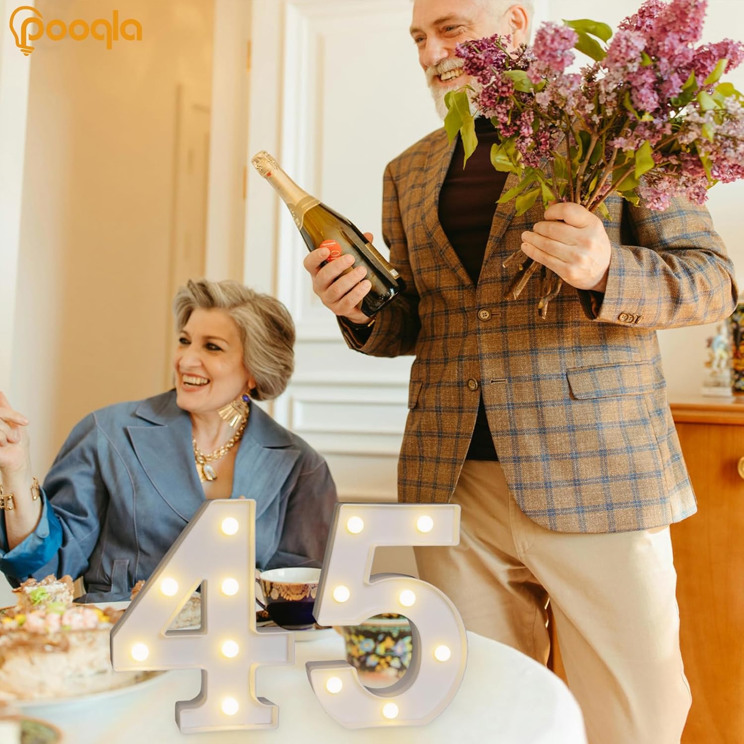 Pooqla Decorative LED Light Up Number Letters, White Plastic Marquee Number Lights Sign for 45th Birthday Party Wedding Decor, Battery Operated (45)