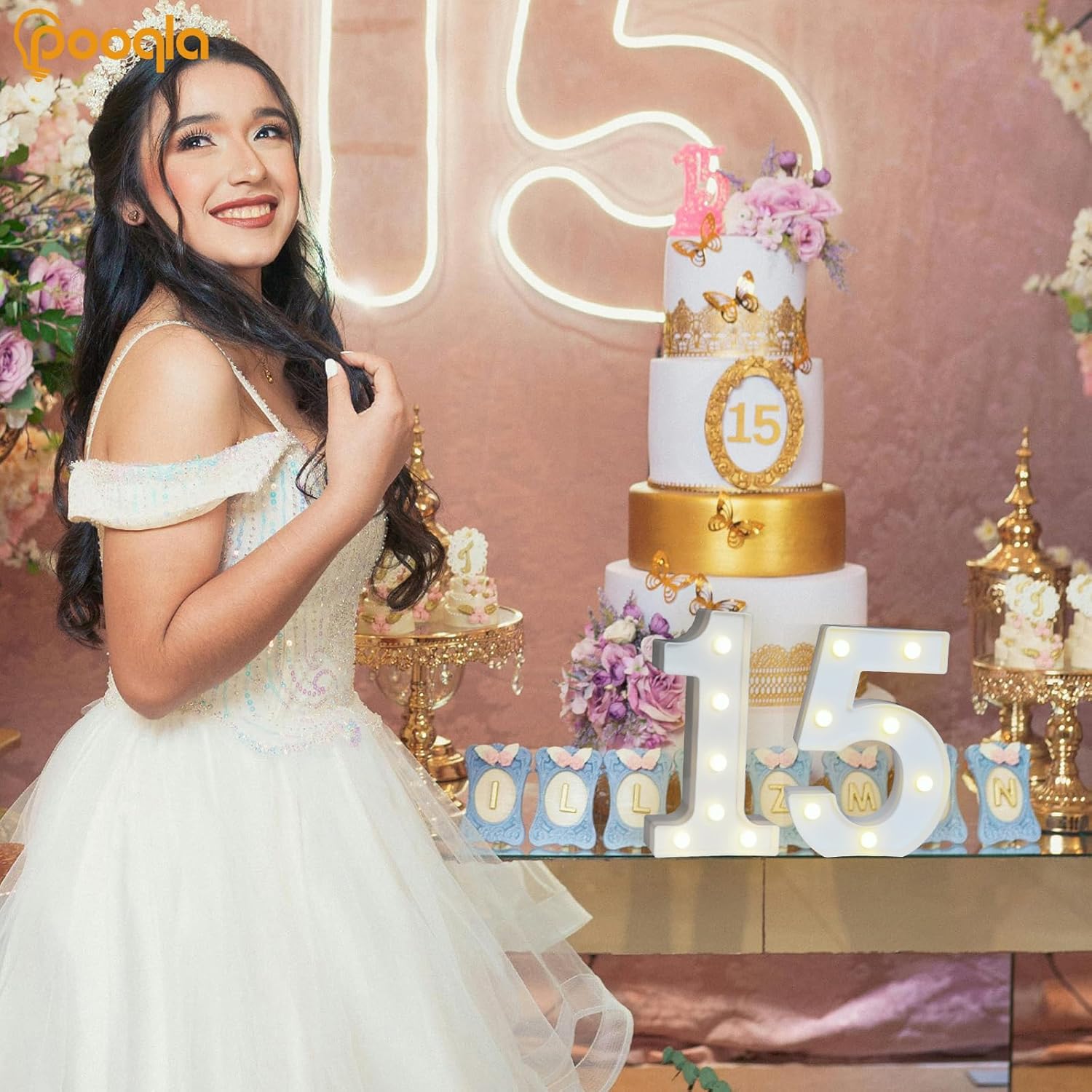 Pooqla Decorative LED Light Up Number Letters, White Plastic Marquee Lights Sign for Birthday Party Wedding Decor, Battery Operated (15)