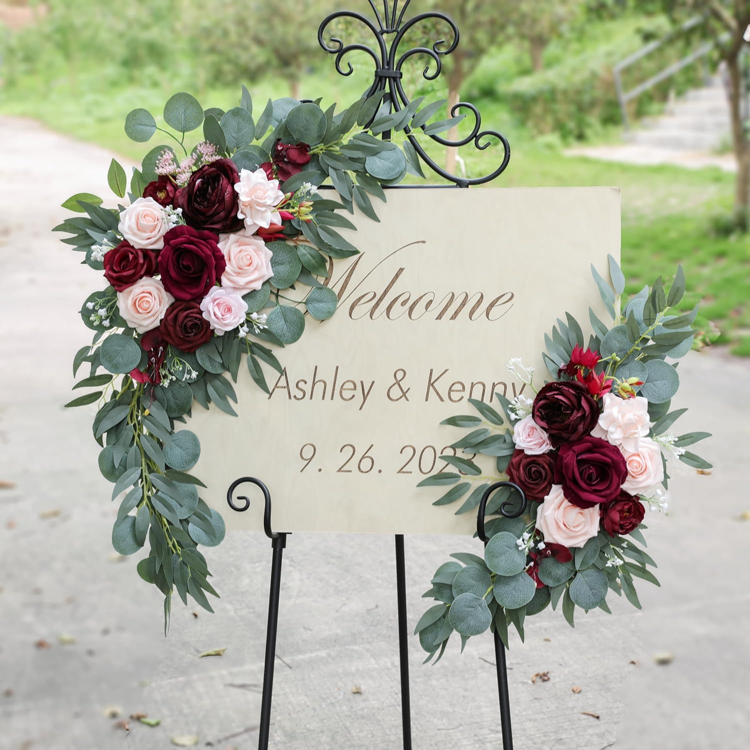 ponatia Wedding Arch Flowers (Pack of 2), Artificial Burgundy Wedding Flowers for Wedding Welcome Signs Decorations and Arch Flower for Wedding Ceremony Reception (Burgundy & Blush)