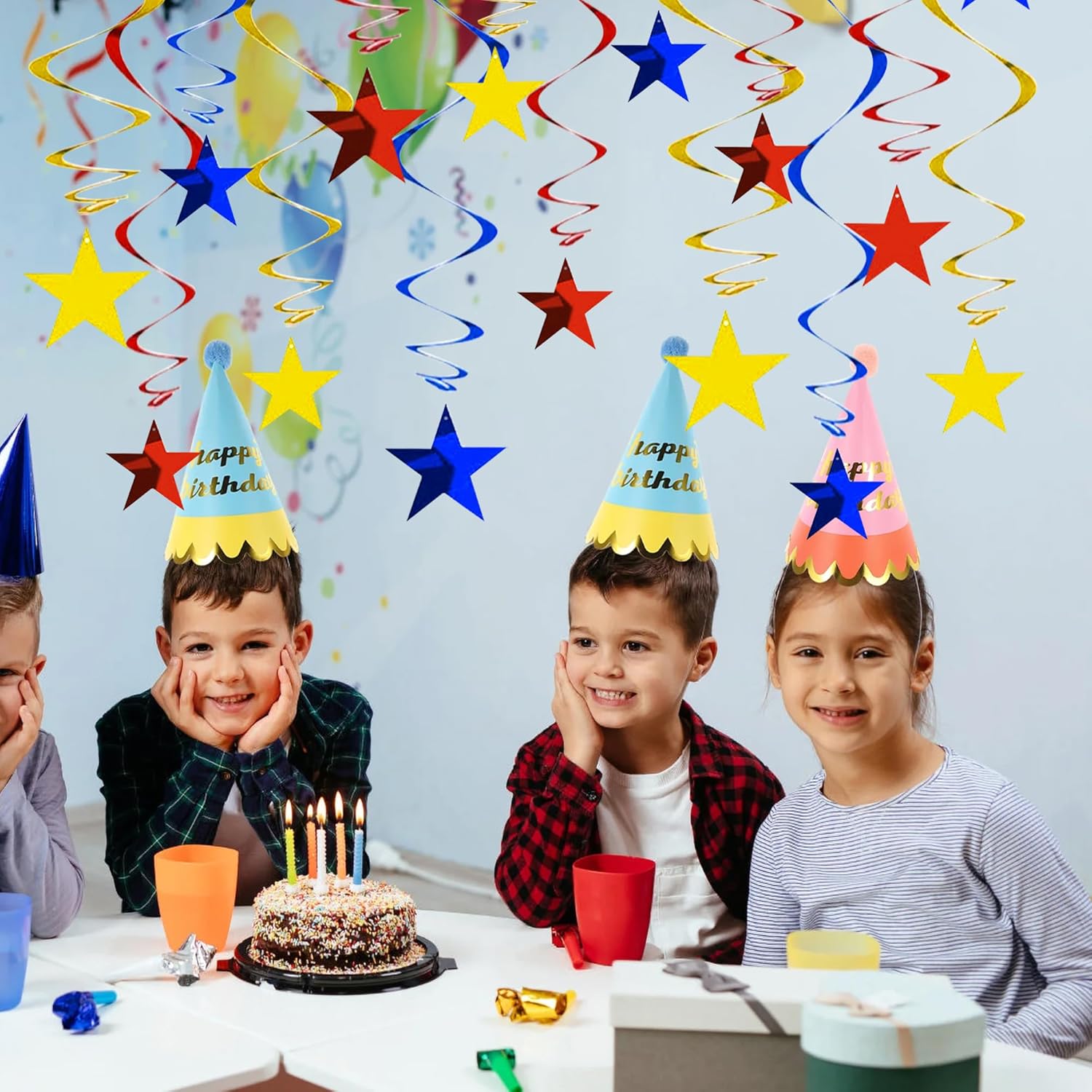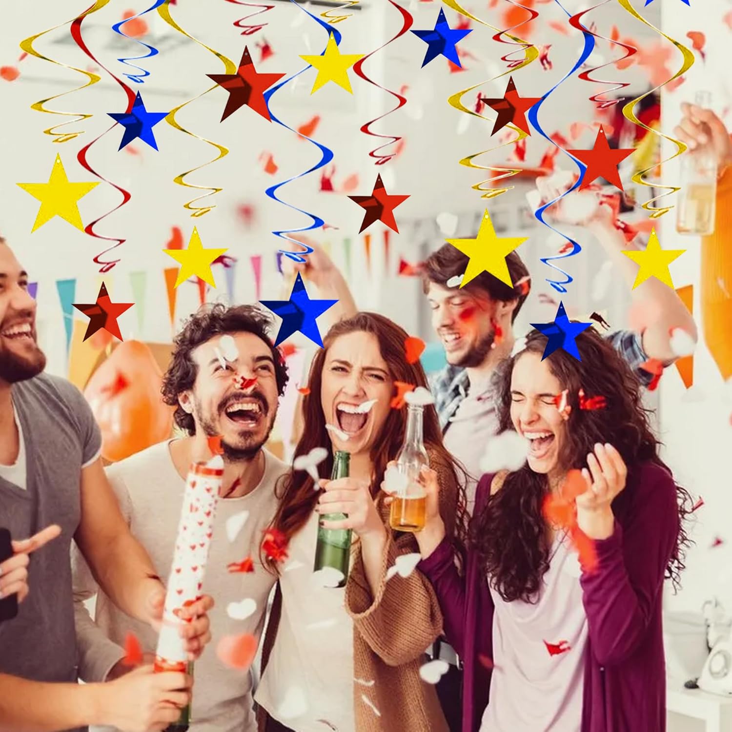 BEISHIDA Red Blue Gold Star Hanging Swirl Decorations, Birthday Hanging Party Supplies for Graduation Wedding Baby Shower Birthday Decorations,Pack of 15