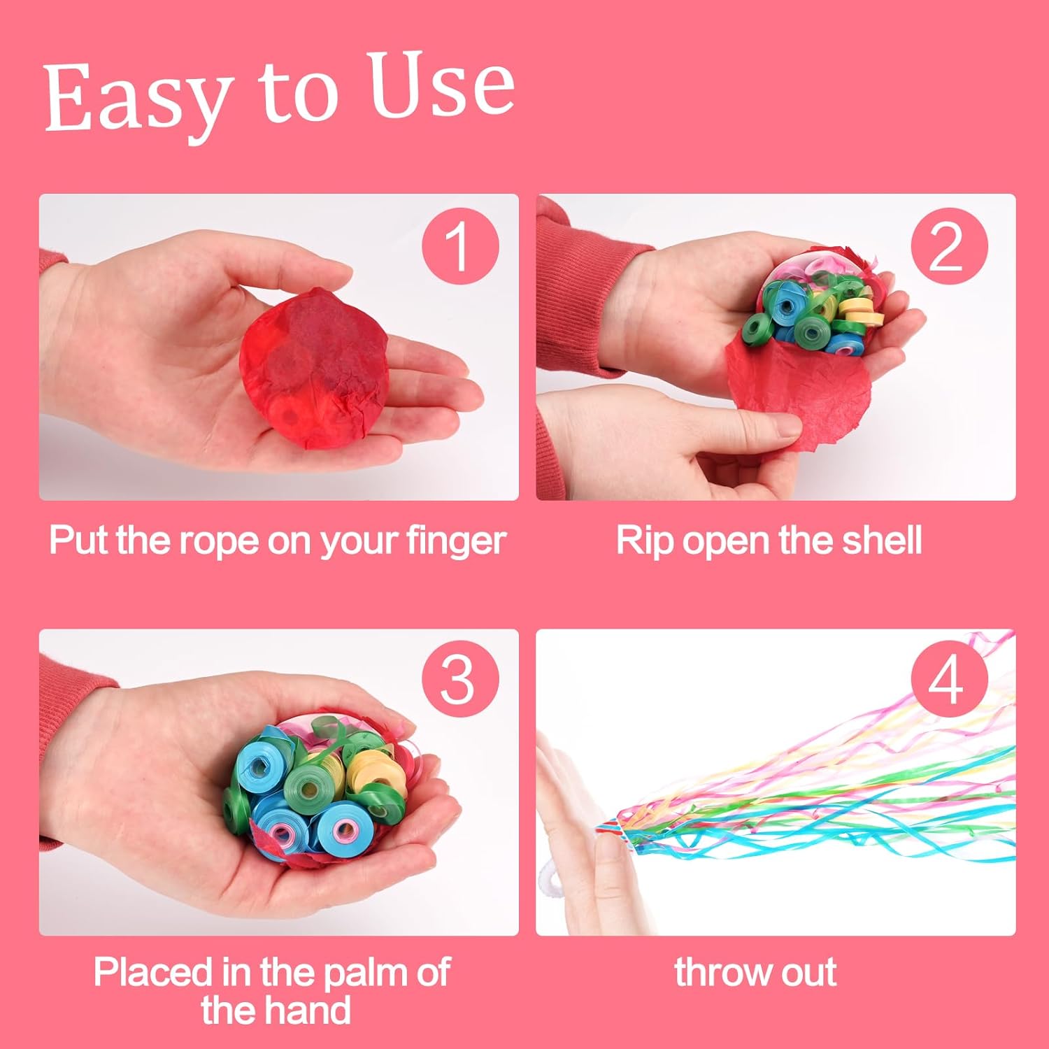- How to use - Put the looped handle above the ribbons on your finger, then tear the wrapping paper at the bottom and throw them at a forward and upward angle, the more ribbons you throw at the same time the better the result. You can achieve a shocking effect and an instant lift in atmosphere