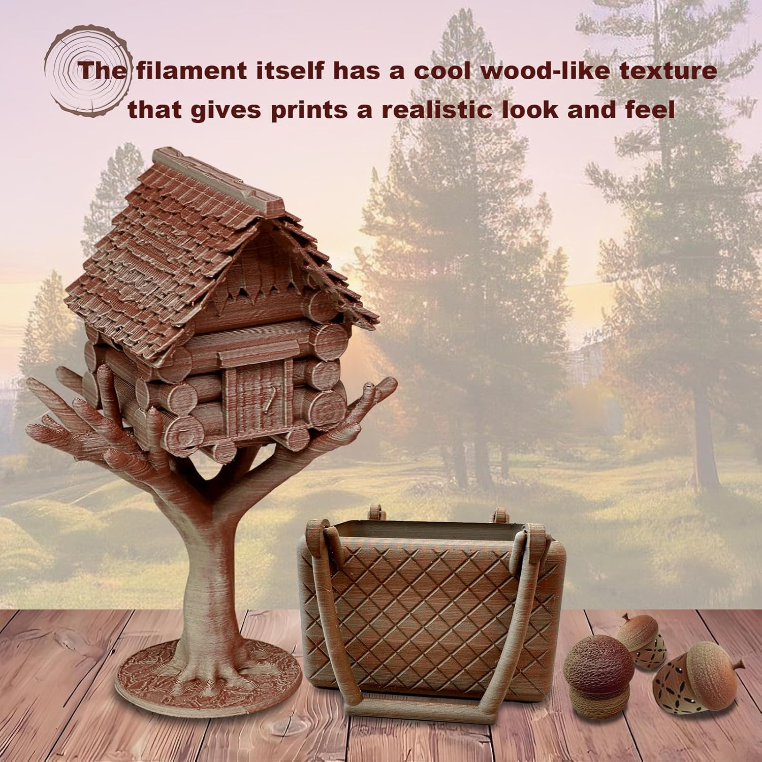 - 【Wood PLA Filament】Wood 3D printing filament 1.75mm, dimensional accuracy +/- 0.02mm, wood PLA has delicate texture and unique performance. The high quality wood color and clear texture give people a feeling of returning to nature, suitable for various wood models