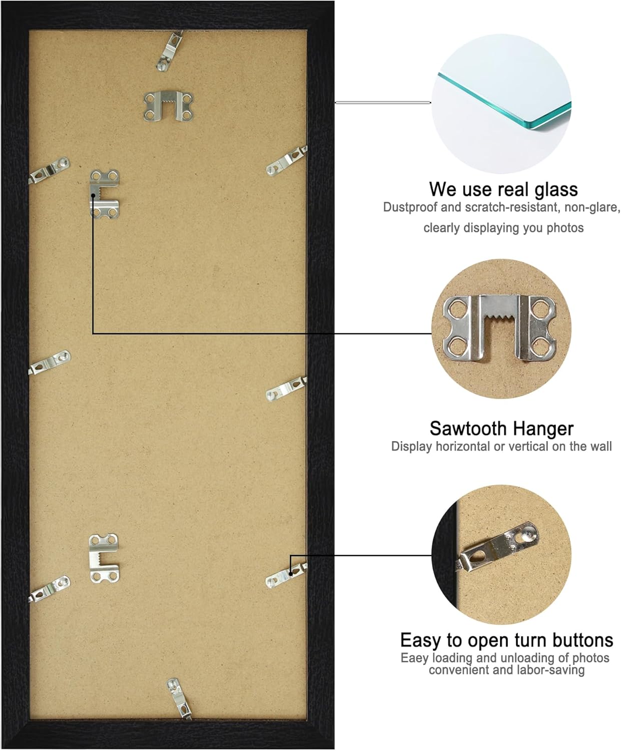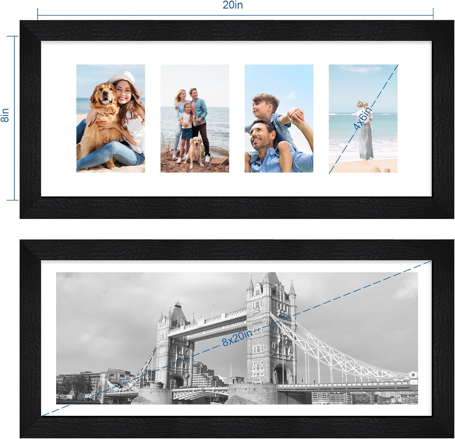 - Fit for 2 Sizes Photos - This poster frames 8 x 20 overall dimension is 9.7x21.7x0.7 inches, fits 8x20 picture without mat, 4 open 4x6 picture with mat. The actual mat opening was designed slightly smaller than photo itself in order to hold it steadily while not a defect