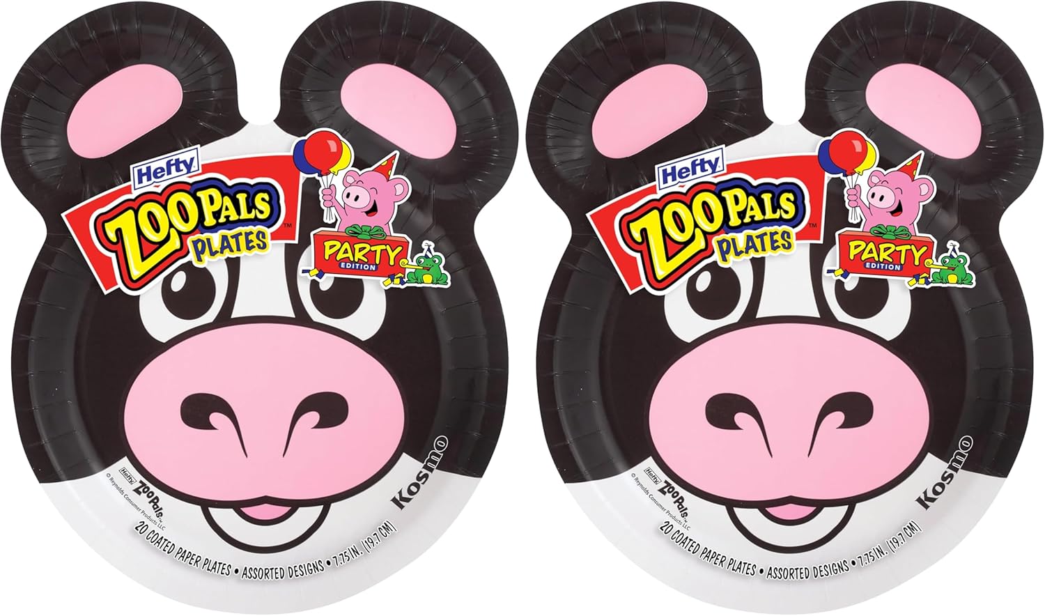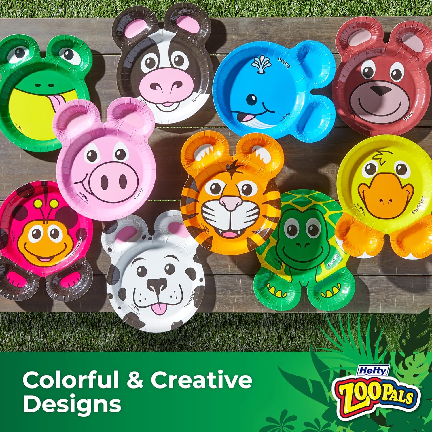 Hefty Zoo Pals Party Edition Paper Plates for Kids, Assorted Animal Designs, 7.75 Inches with Two Dipping Compartments, 20 Count (Pack of 2)