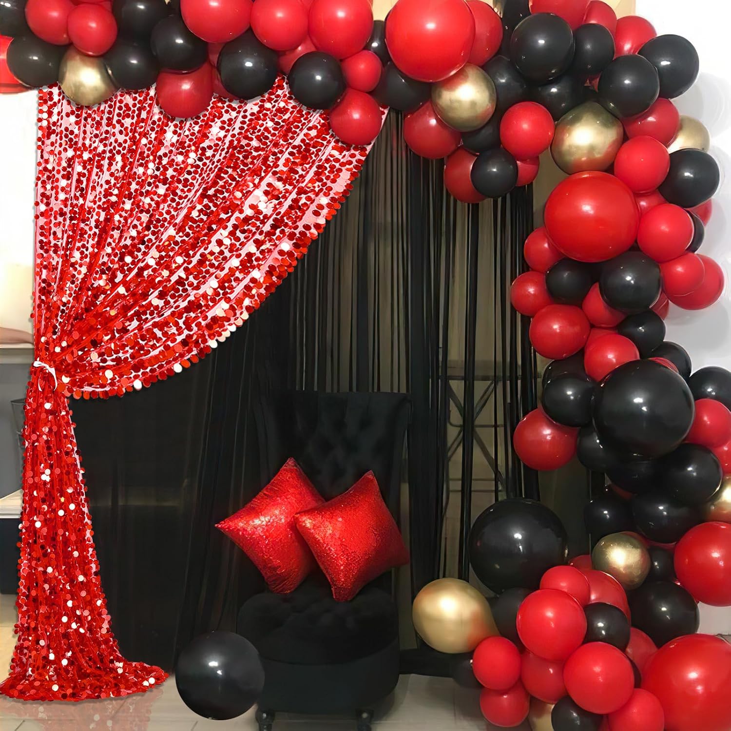 Red Big Payette Sequin Backdrop 4ftx8ft Glitter Drapes Panels Home Party Cake Table Background Curtains Decorations