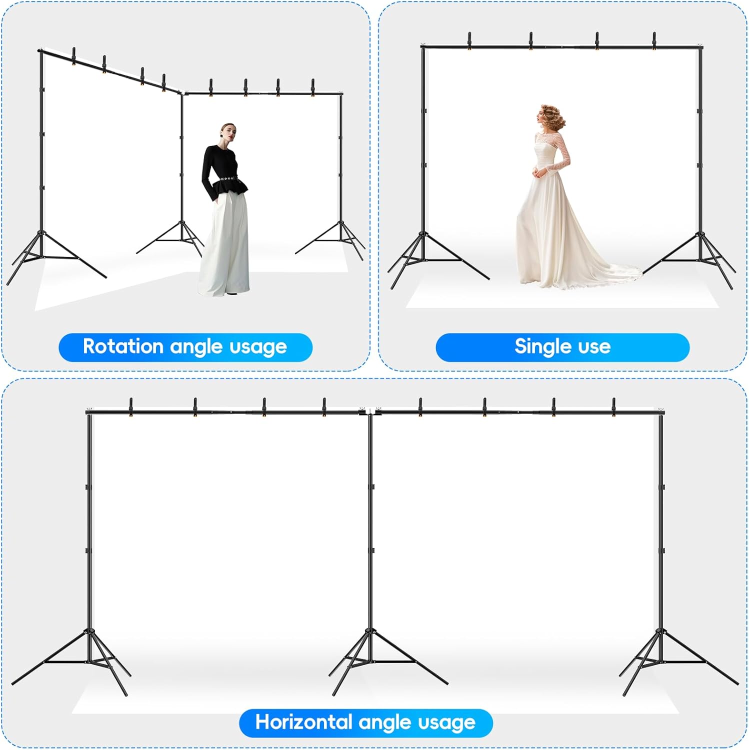 - 【Photo Backdrop Kit】The backdrop stand is designed to ensure stable support for your backdrop, and it is Ideal for portrait, YouTube videos, party, baby shower, home studio, wedding or special events.It can not only serve as a photography backdrop stand, but also hold decorations such as balloons, curtains, and flags for parties, weddings, and some festival activities