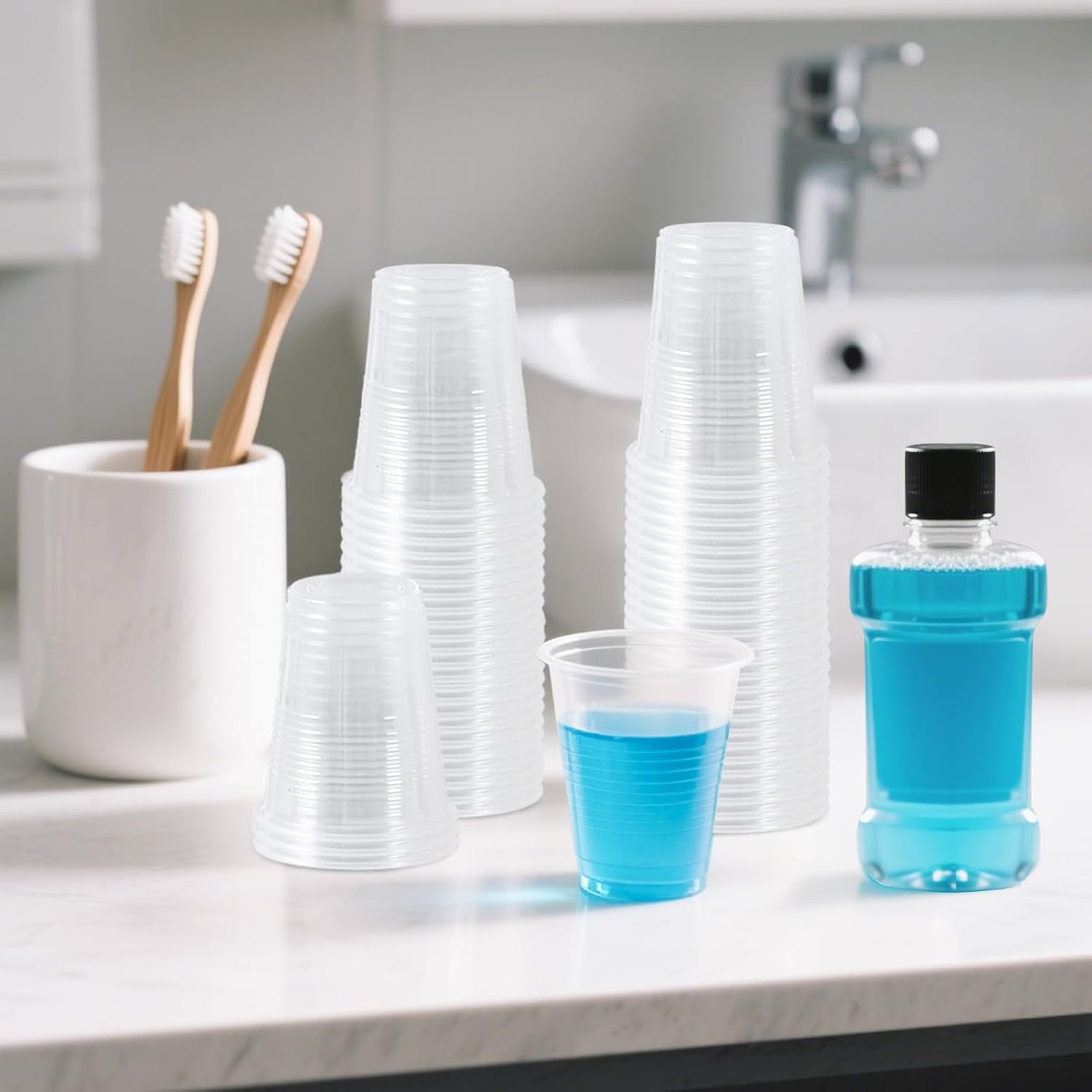 SIUQ 600 Pack 5 oz Clear Plastic Cups, Small Disposable Bathroom Mouthwash Cups, Hot/Cold Beverage Drinking Cup for Party, Picnic, Travel, Halloween, Christmas