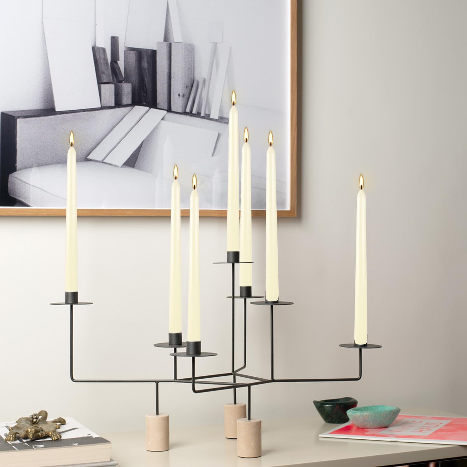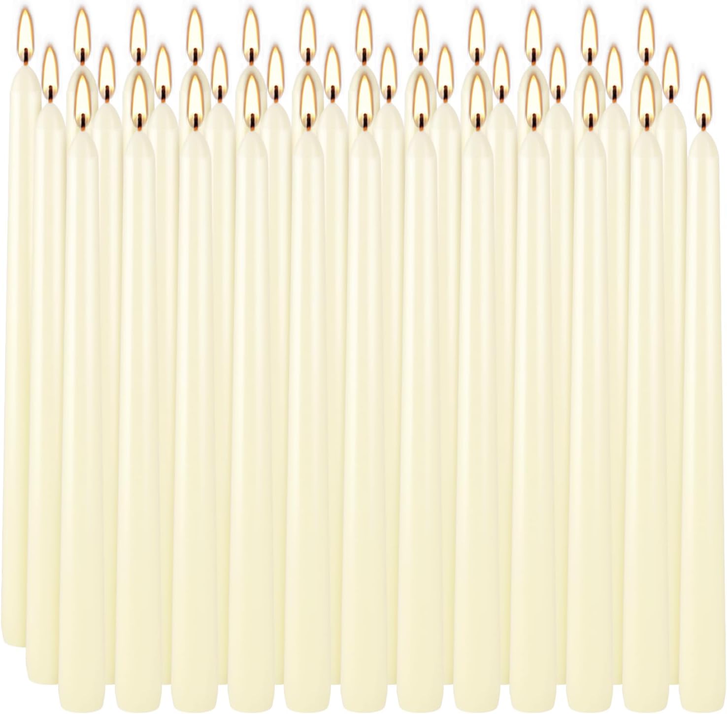36 Pack Ivory White Taper Candles, 7-8 Hours Burn Time, Unscented, Smokeless and Dripless, 0.8 x 10 Inch Dinner Candle Set for Household, Wedding, Party and Home Décor Candlesticks