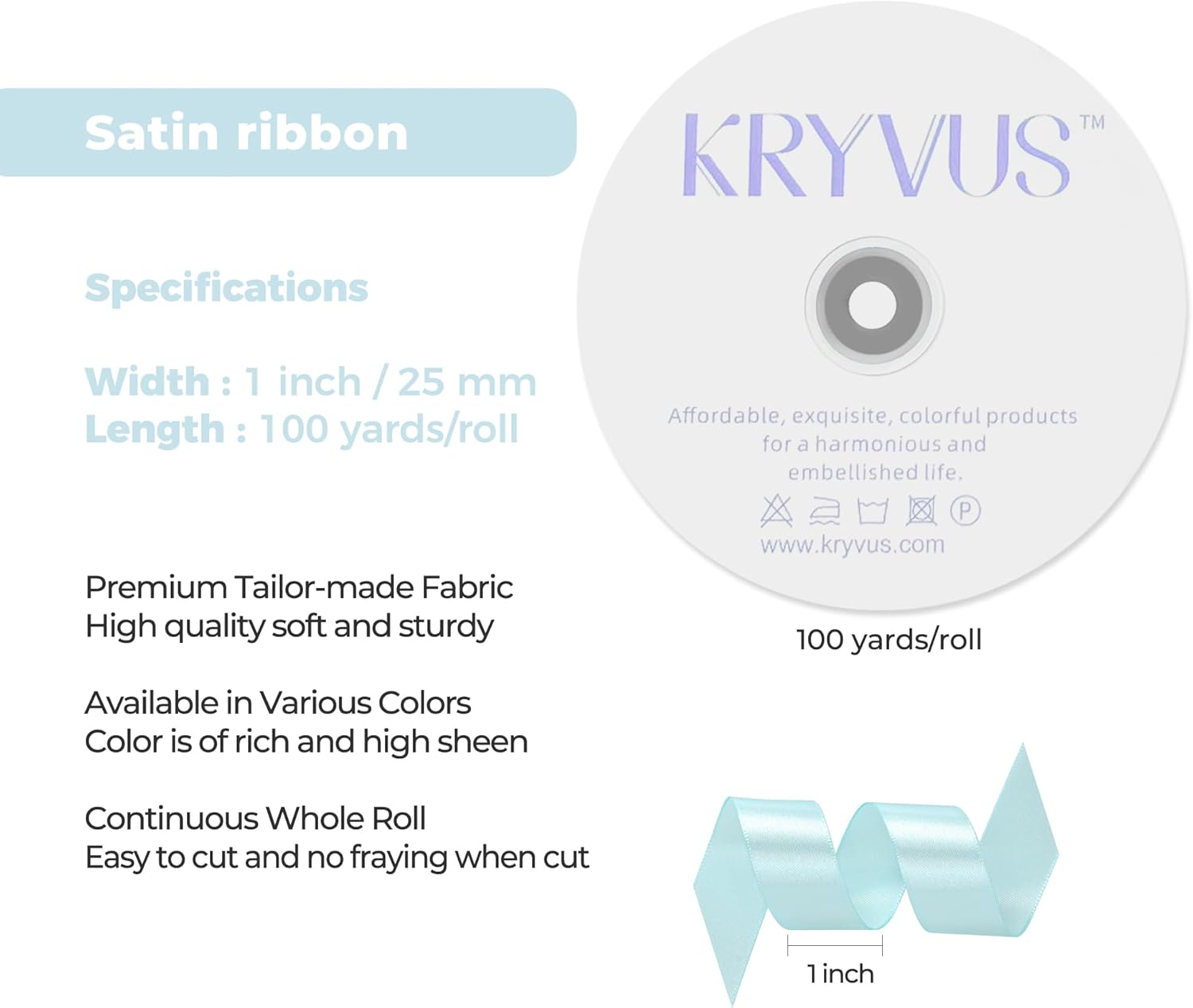 Light Blue Satin Ribbon 1 inch X Continuous 100 Yards, Single Face Polyester Ribbon Perfect for Gift Wrapping, Flower Bouquet, Wedding Decor, Crafts, Bow Making, Sewing and More