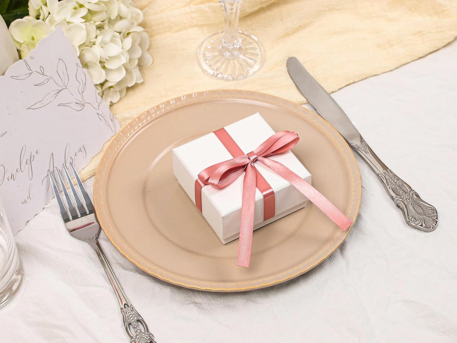 - Packing & Size: This 3/8 inch wide, 50 yards rose gold ribbon features a smooth, glossy finish that exudes luxury; Perfect for gift wrapping, hair accessories, and floral arrangements, its vibrant red color adds a touch of elegance to any project