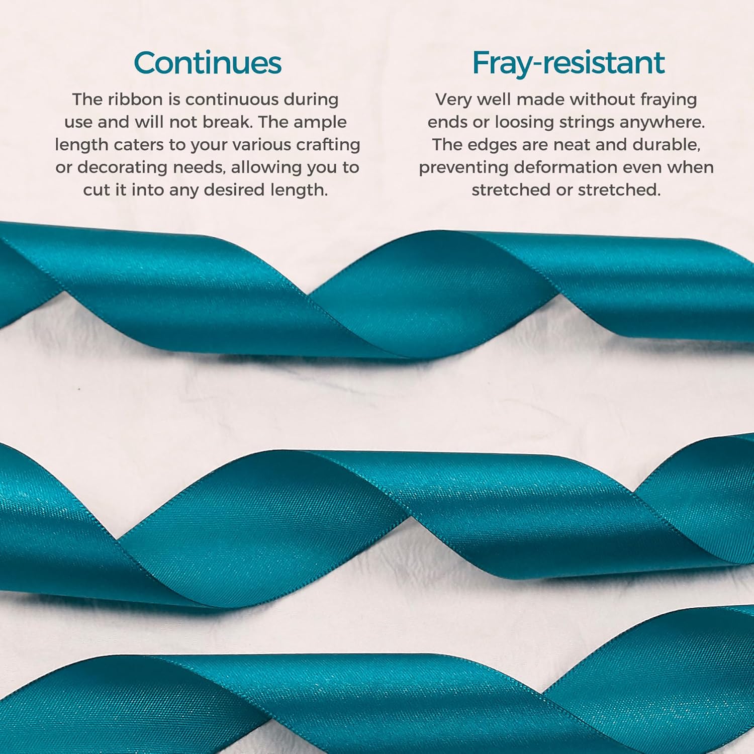 - Premium Material: Our turquoise satin ribbon is crafted from premium 100% polyester satin fabric, known for its exceptional durability, smooth texture, and vibrant color; The high-quality polyester satin material ensures that the ribbon is wrinkle-free, easy to handle, and maintains its luster even after repeated use. This ribbon is designed to be tear-resistant and colorfast, making it ideal for a wide range of crafting applications