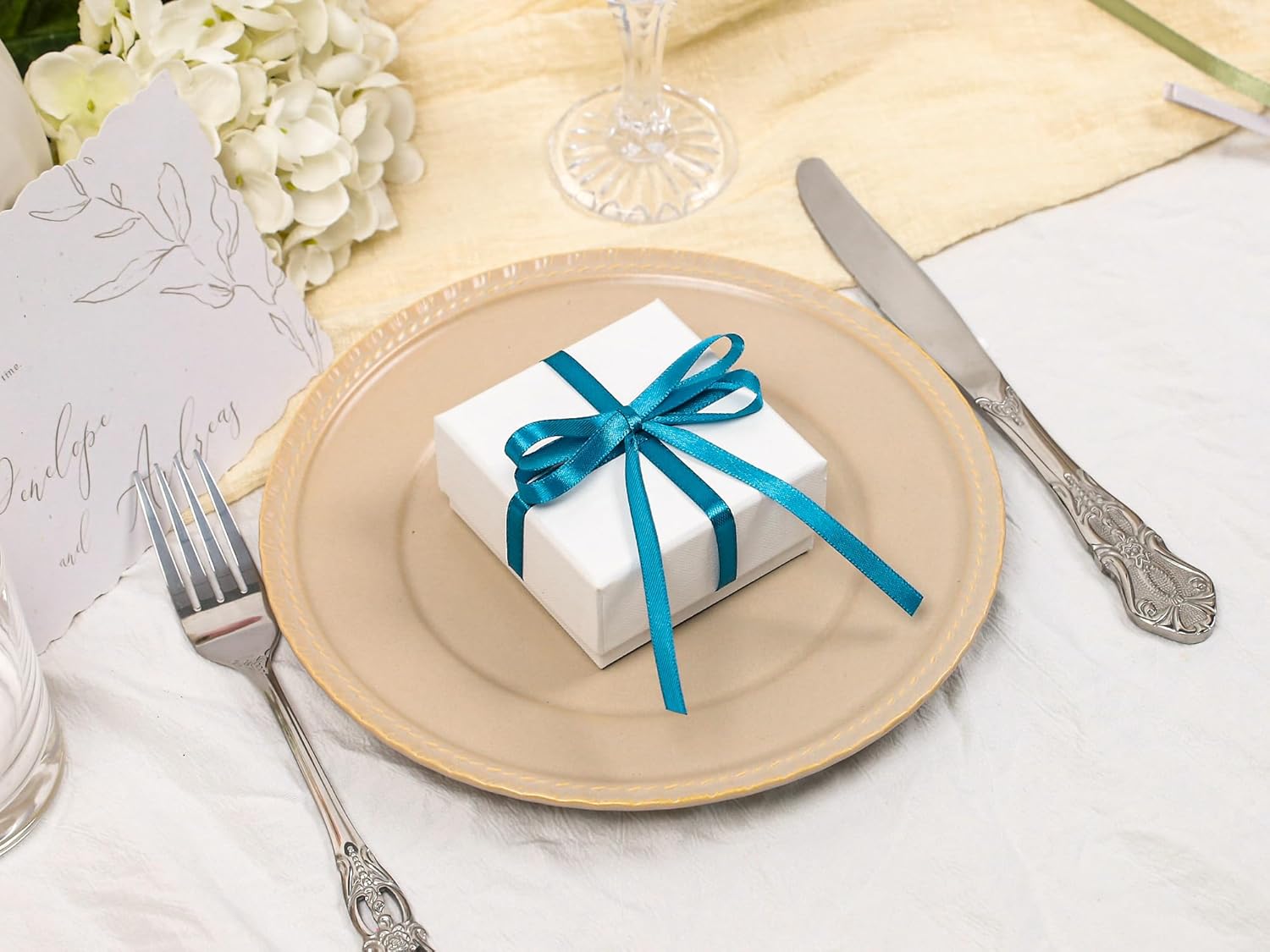 - Premium Material: Our turquoise satin ribbon is crafted from premium 100% polyester satin fabric, known for its exceptional durability, smooth texture, and vibrant color; The high-quality polyester satin material ensures that the ribbon is wrinkle-free, easy to handle, and maintains its luster even after repeated use. This ribbon is designed to be tear-resistant and colorfast, making it ideal for a wide range of crafting applications