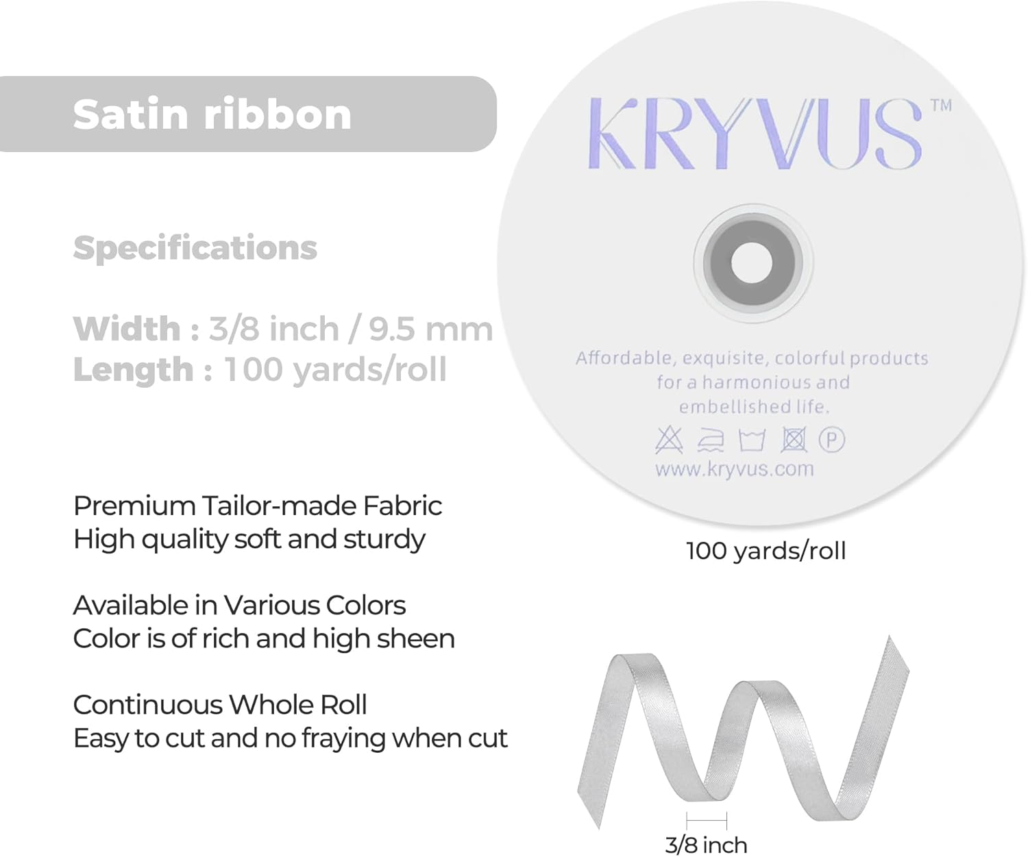 Silver Satin Ribbon 3/8 inch X Continuous 100 Yards, Single Face Polyester Ribbon Perfect for Gift Wrapping, Flower Bouquet, Wedding Decor, Crafts, Bow Making, Sewing and More