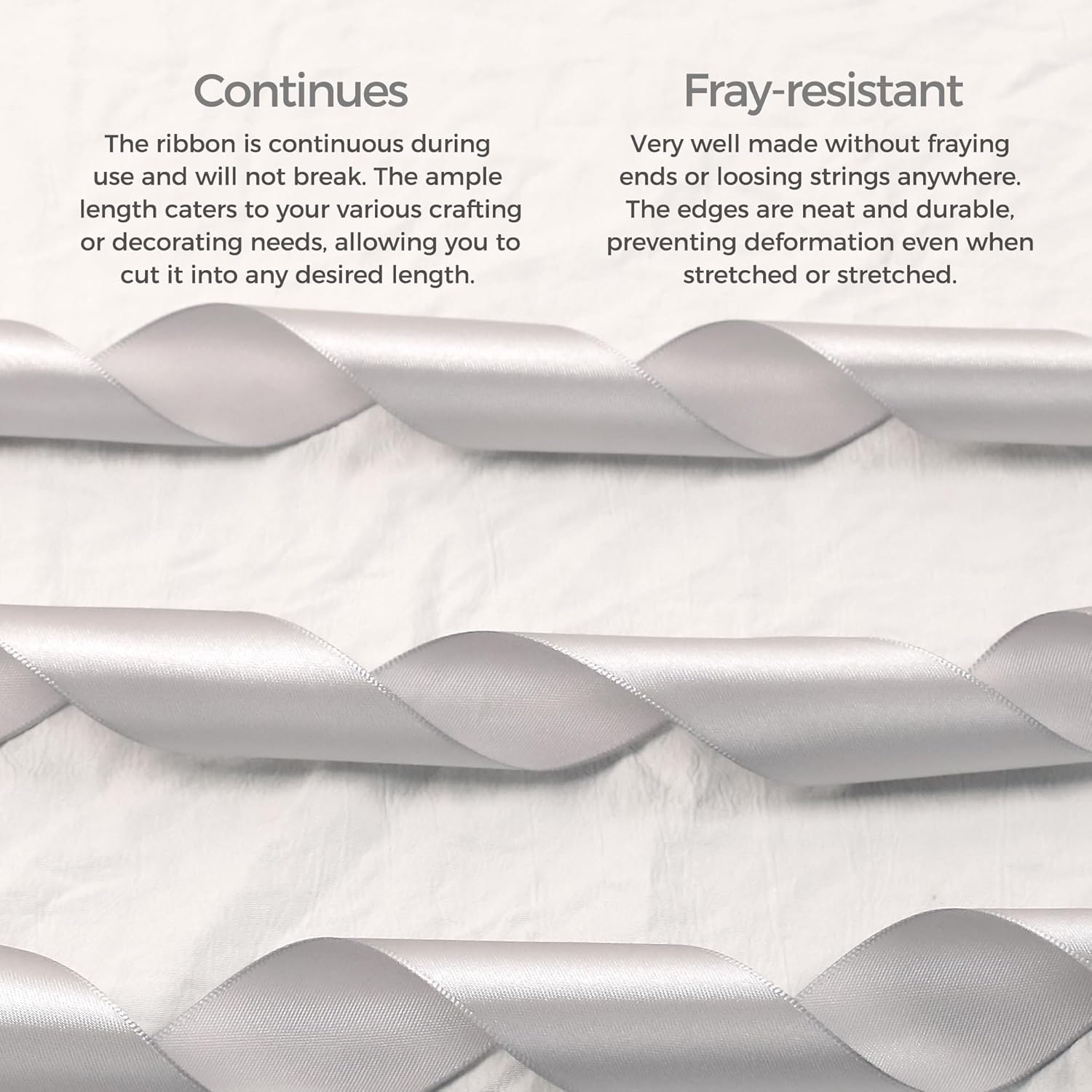 - Premium Material: Our silver satin ribbon is crafted from premium 100% polyester satin fabric, known for its exceptional durability, smooth texture, and vibrant color; The high-quality polyester satin material ensures that the ribbon is wrinkle-free, easy to handle, and maintains its luster even after repeated use. This ribbon is designed to be tear-resistant and colorfast, making it ideal for a wide range of crafting applications