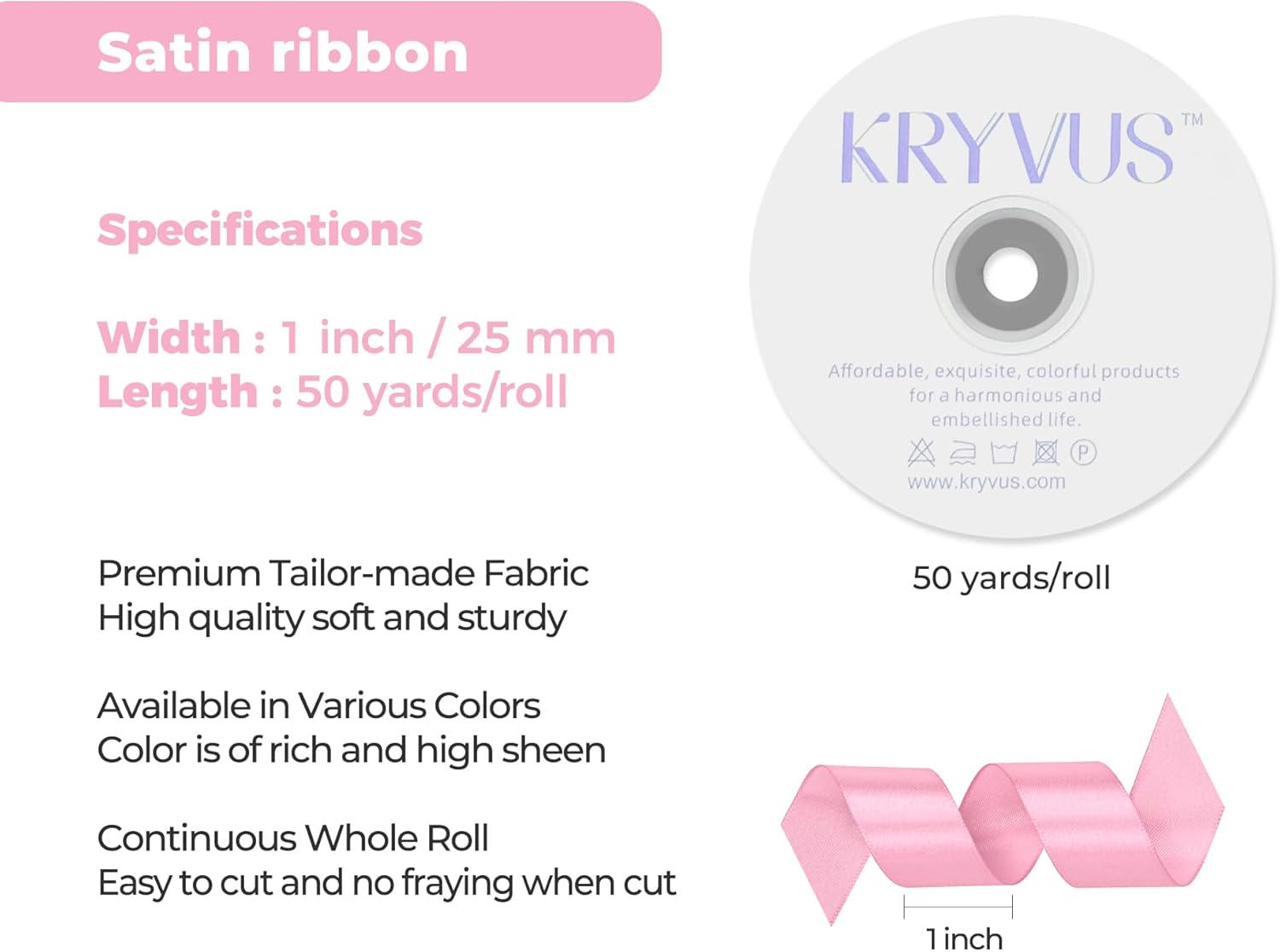 Rose Pink Satin Ribbon 1 inch X Continuous 50 Yards, Single Face Polyester Ribbon Perfect for Gift Wrapping, Flower Bouquet, Wedding Decor, Crafts, Bow Making, Sewing and More