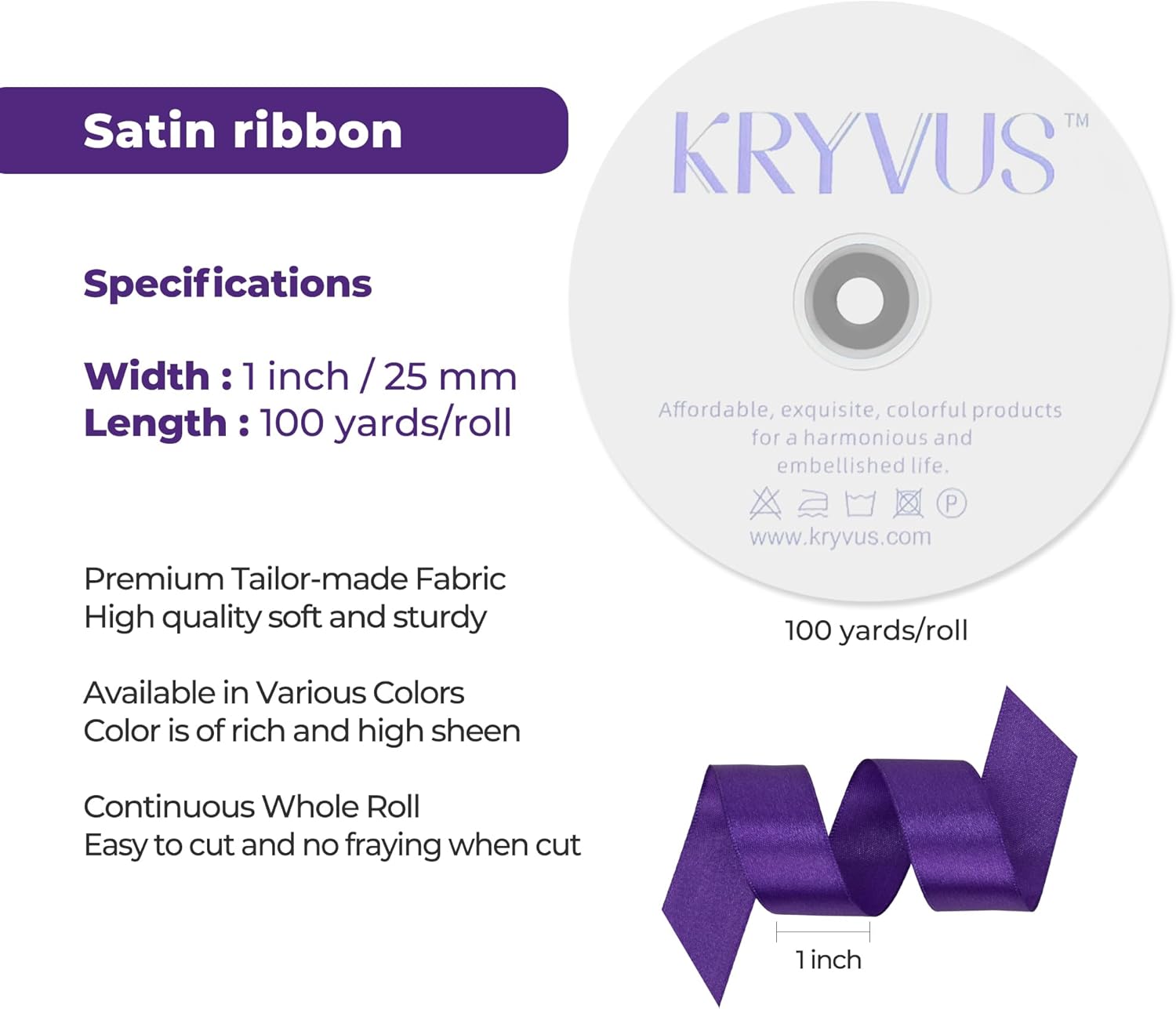 Purple Satin Ribbon 1 inch X Continuous 100 Yards, Single Face Polyester Ribbon Perfect for Gift Wrapping, Flower Bouquet, Wedding Decor, Crafts, Bow Making, Sewing and More