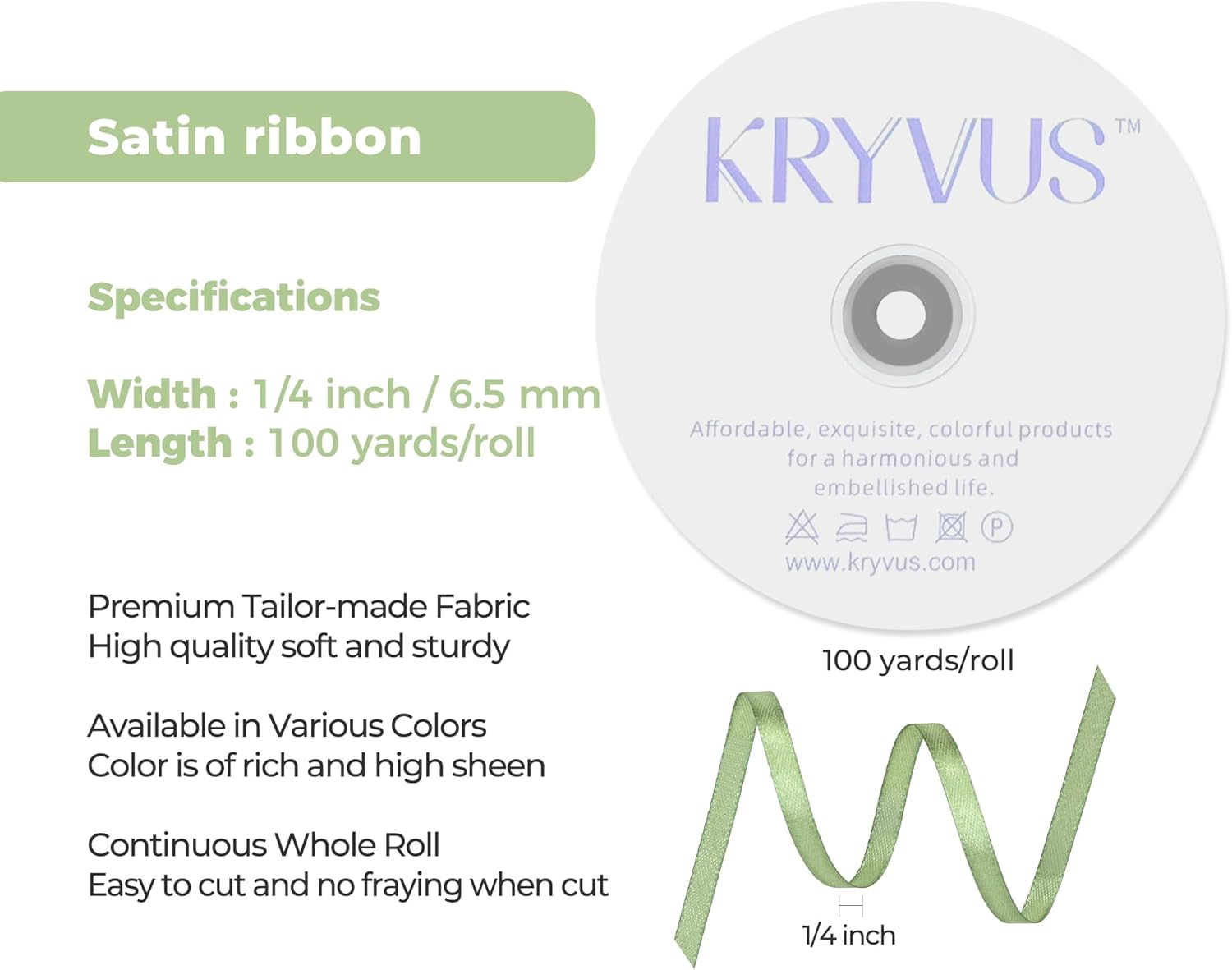 Sage Green Satin Ribbon 1/4 inch X Continuous 100 Yards, Single Face Polyester Ribbon Perfect for Gift Wrapping, Flower Bouquet, Wedding Decor, Crafts, Bow Making, Sewing and More