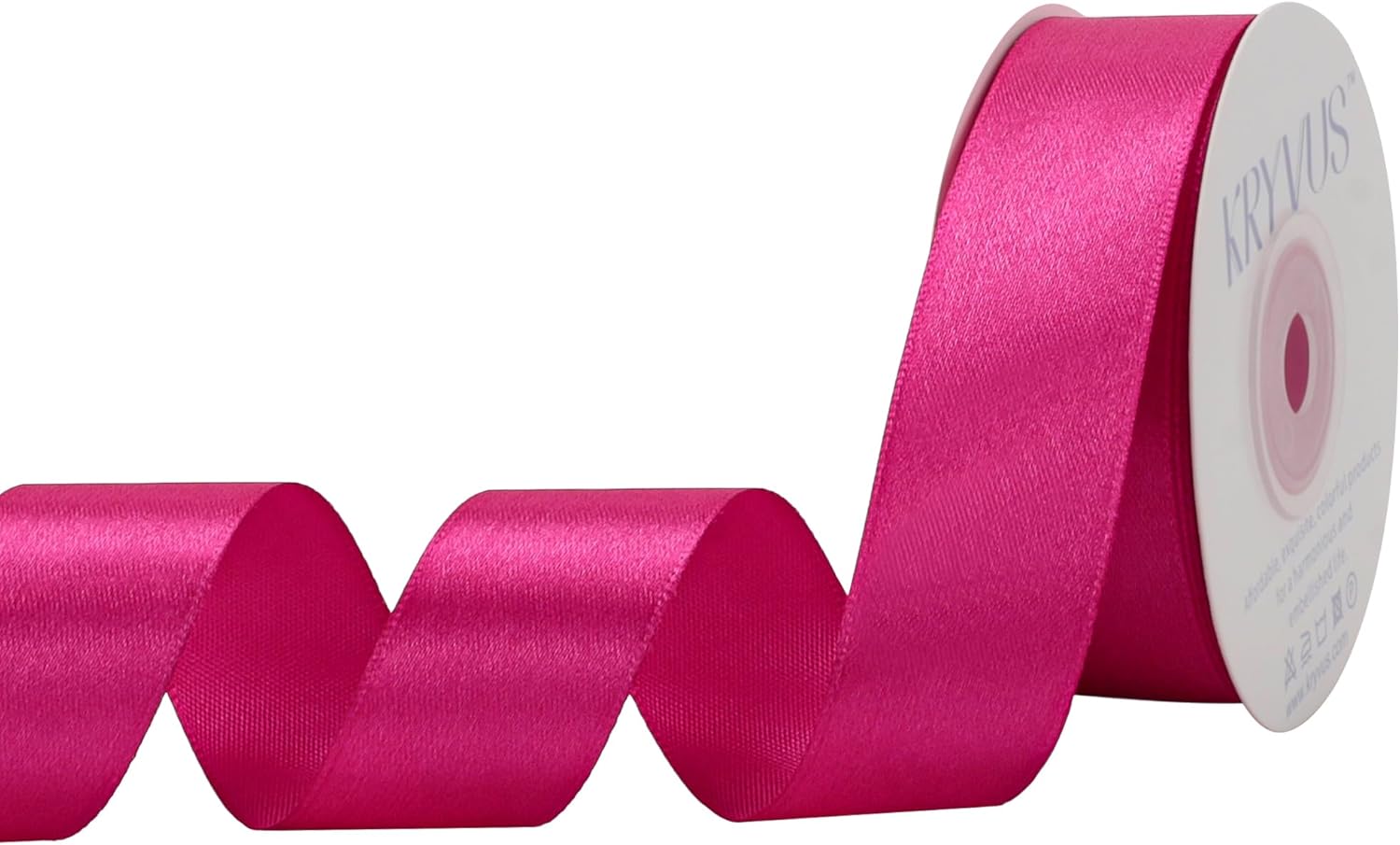 Rose Red Satin Ribbon 1 inch X Continuous 25 Yards, Single Face Polyester Ribbon Perfect for Gift Wrapping, Flower Bouquet, Wedding Decor, Crafts, Bow Making, Sewing and More