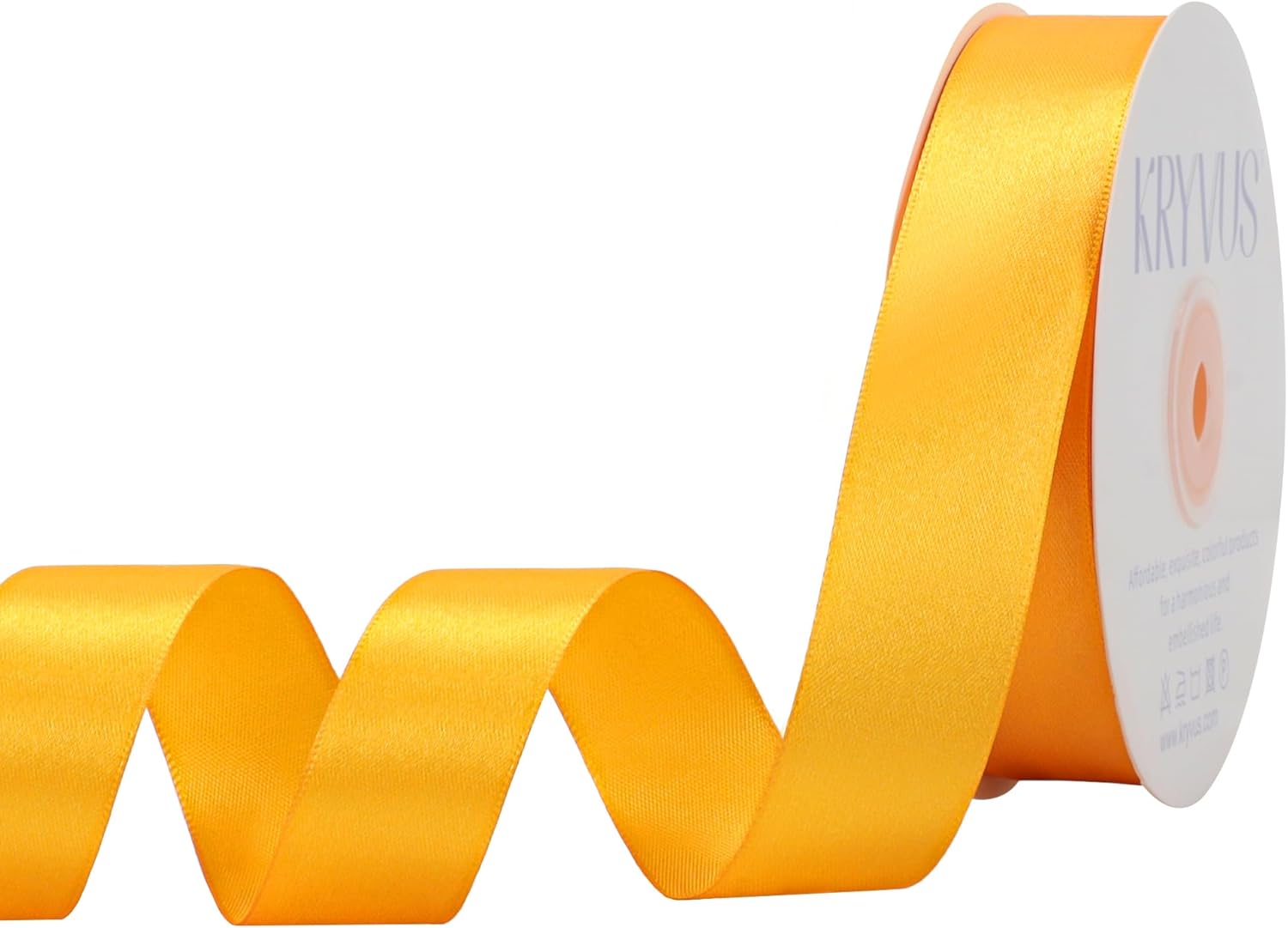 Yellow Satin Ribbon 1 inch X Continuous 50 Yards, Single Face Polyester Ribbon Perfect for Gift Wrapping, Flower Bouquet, Wedding Decor, Crafts, Bow Making, Sewing and More