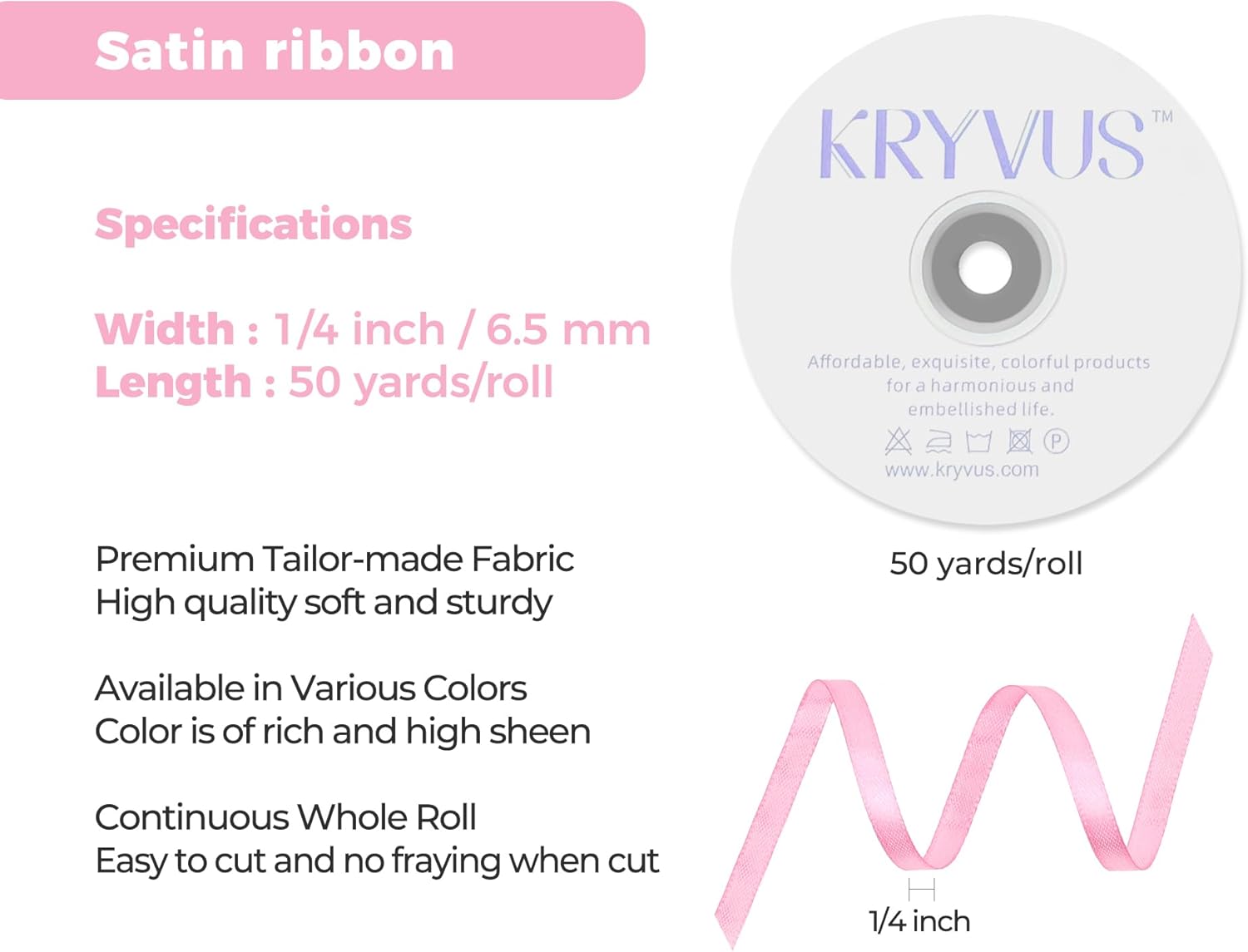 Rose Pink Satin Ribbon 1/4 inch X Continuous 50 Yards, Single Face Polyester Ribbon Perfect for Gift Wrapping, Flower Bouquet, Wedding Decor, Crafts, Bow Making, Sewing and More