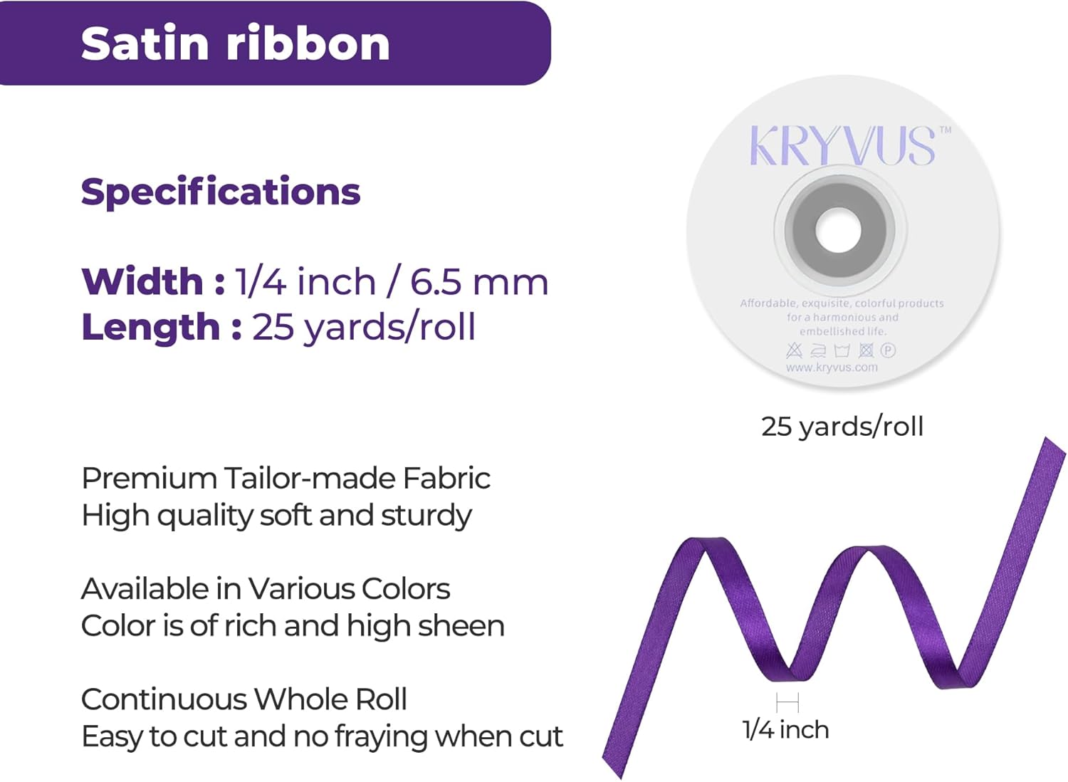 - Premium Material: Our purple satin ribbon is crafted from premium 100% polyester satin fabric, known for its exceptional durability, smooth texture, and vibrant color; The high-quality polyester satin material ensures that the ribbon is wrinkle-free, easy to handle, and maintains its luster even after repeated use. This ribbon is designed to be tear-resistant and colorfast, making it ideal for a wide range of crafting applications