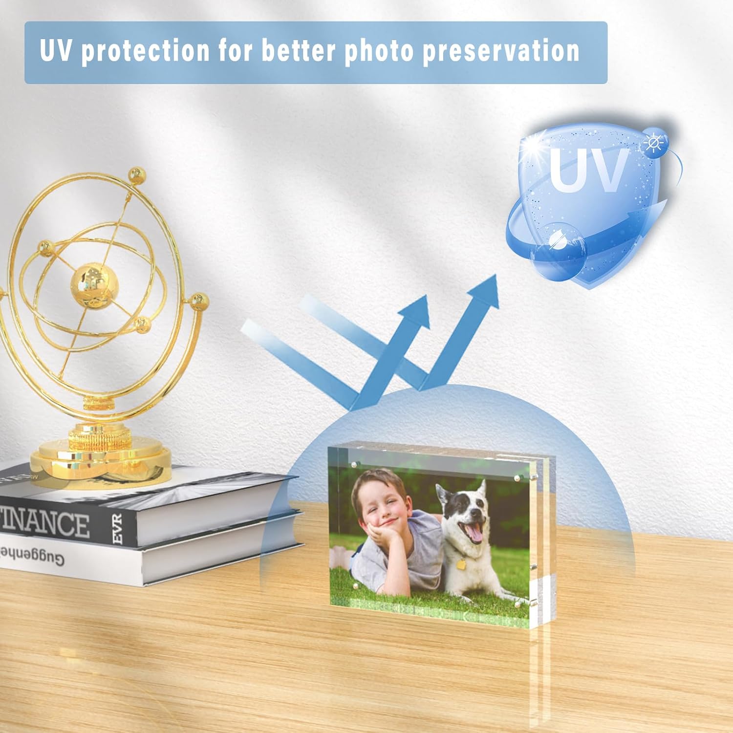 HELPLEX Acrylic Frame, 5 Pack 3.5x5 Acrylic Picture Frames, 20mm Thicker Frameless Clear Frame Double Sided Magnetic Frame, Free Standing Desktop Display Stand Acrylic Frames, 3.5x5(5 PACK)