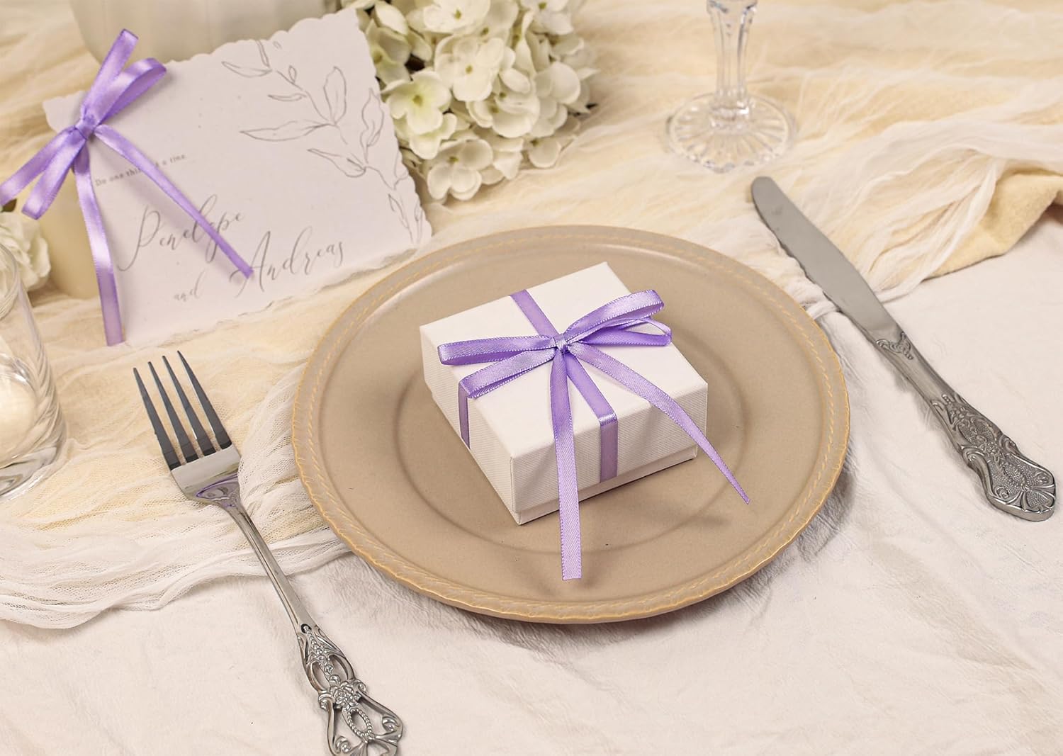 - Premium Material: Our lilac satin ribbon is crafted from premium 100% polyester satin fabric, known for its exceptional durability, smooth texture, and vibrant color; The high-quality polyester satin material ensures that the ribbon is wrinkle-free, easy to handle, and maintains its luster even after repeated use. This ribbon is designed to be tear-resistant and colorfast, making it ideal for a wide range of crafting applications
