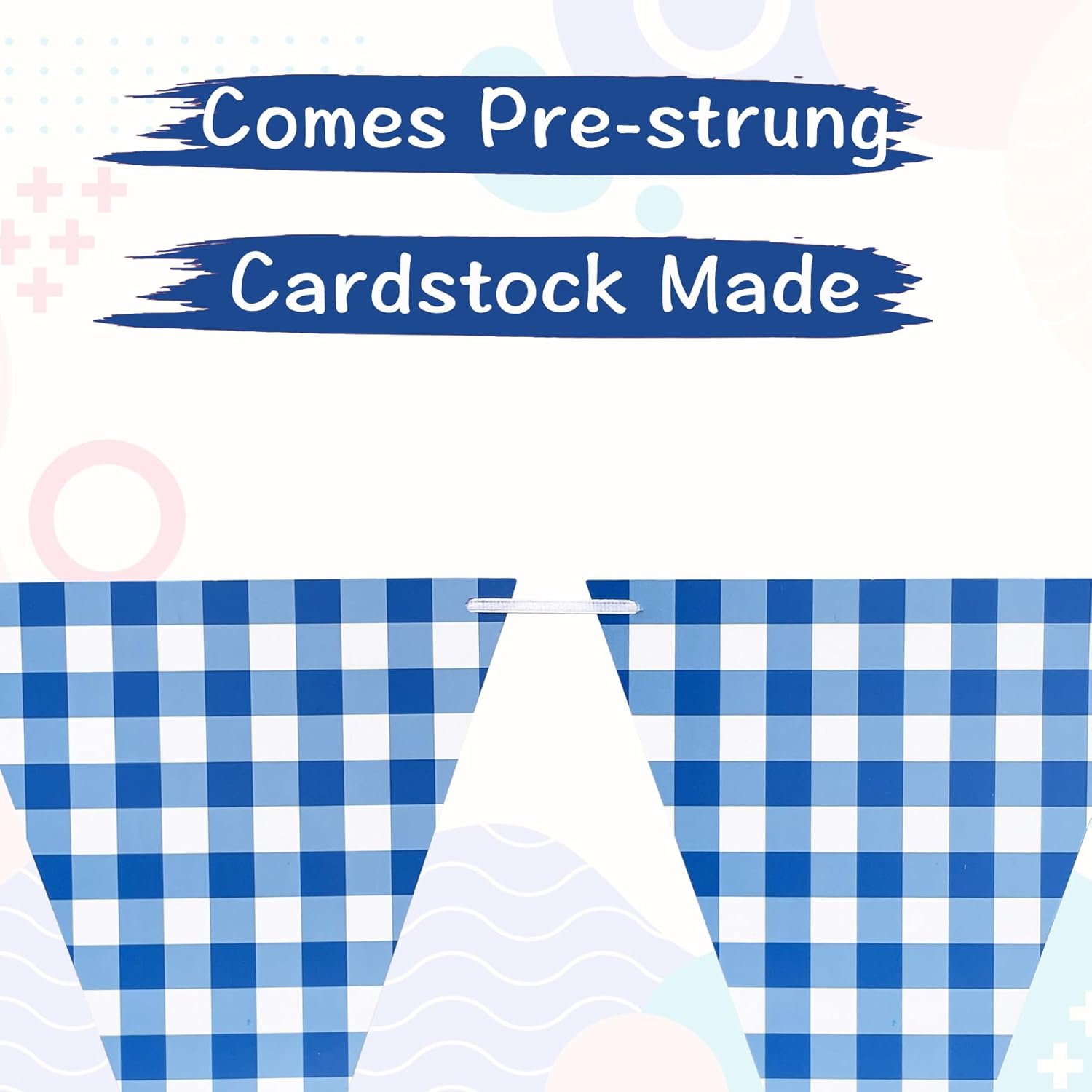 • Package includes 2pcs checkered pennant banner in classic blue and white gingham pattern, matching well with the picnic theme, pre-strung and distance adjustable that you can space them easily to the perfect site you like.