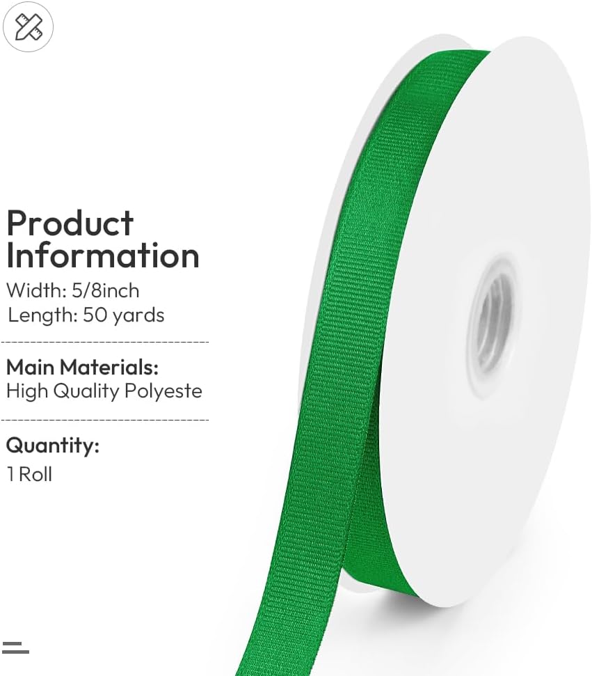 5/8" X 50 Yards Green Grosgrain Ribbon, Premium Grosgrain Ribbon for Sewing, Gift Wrapping, Bow Making, Wedding Decor, Wrapping and More (Green)