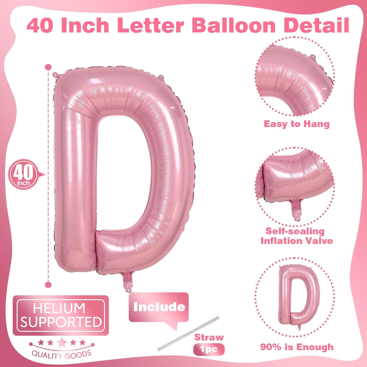 - π What You Will Get: Our giant letter balloon package includes 1pc 40 inch "D" letter foil pastel pink balloon and 1pc convenient straw for inflate. You can choose any big alphabet balloon to combine and customize the word you want to form. For example: OH BABY, BRIDE, GIRL, BIG SIS. Make your party more unique and meaningful.