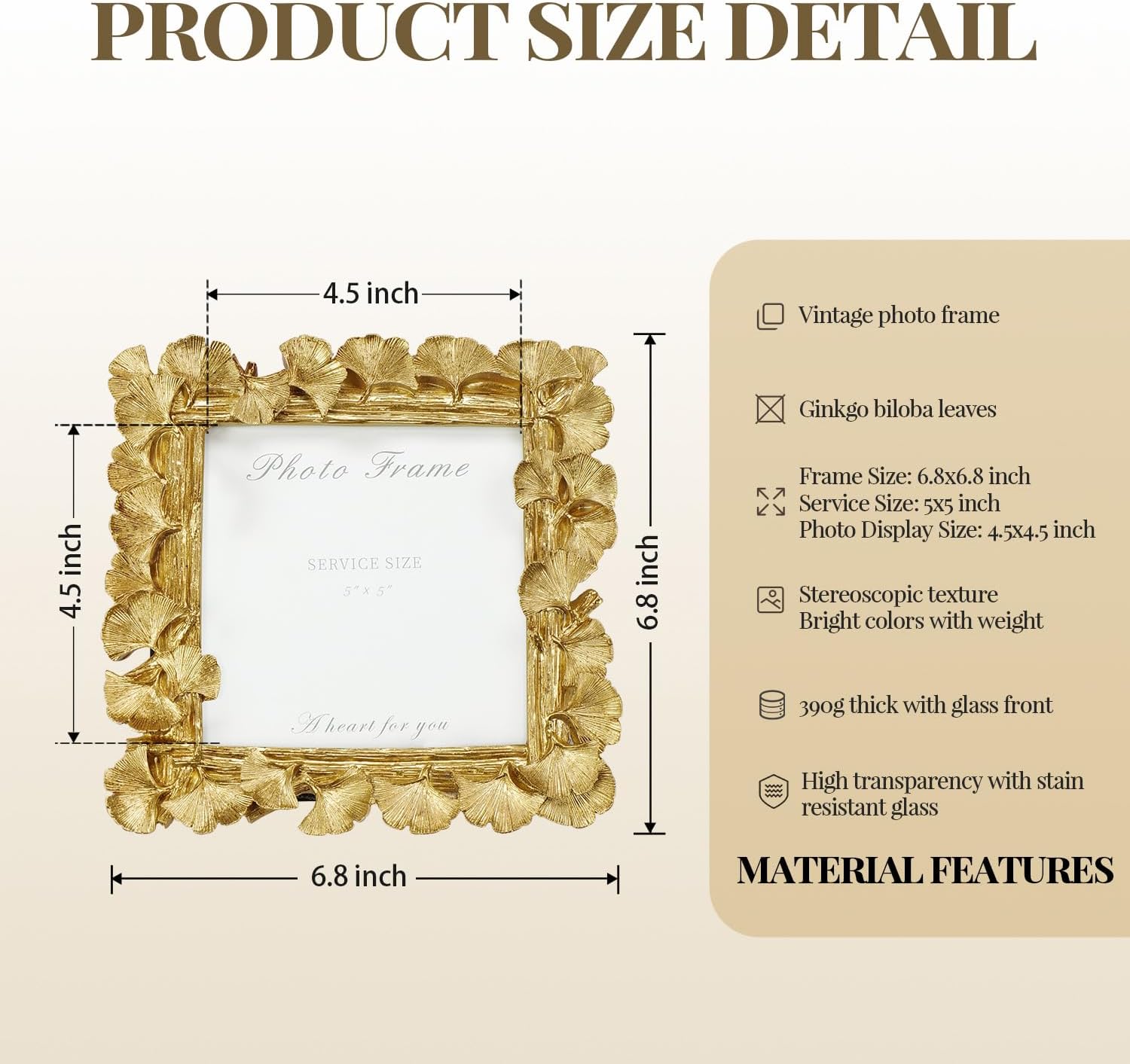- Square Gold frame accommodate a 5x5 inch picture size, while the picture display size is 4.5x4.5 inch.