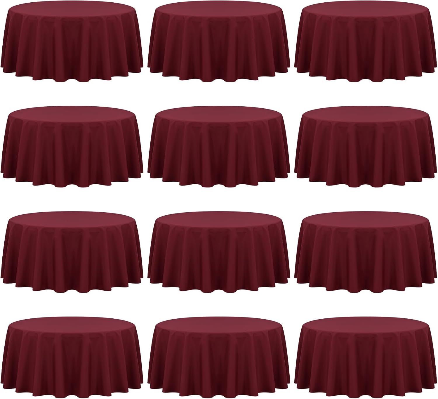 Fani 12 Pack 90 Inch Round Burgundy Polyester Tablecloths for Round Table, Wedding Party, Dining Table, Buffet, Banquet, Restaurant, Camping