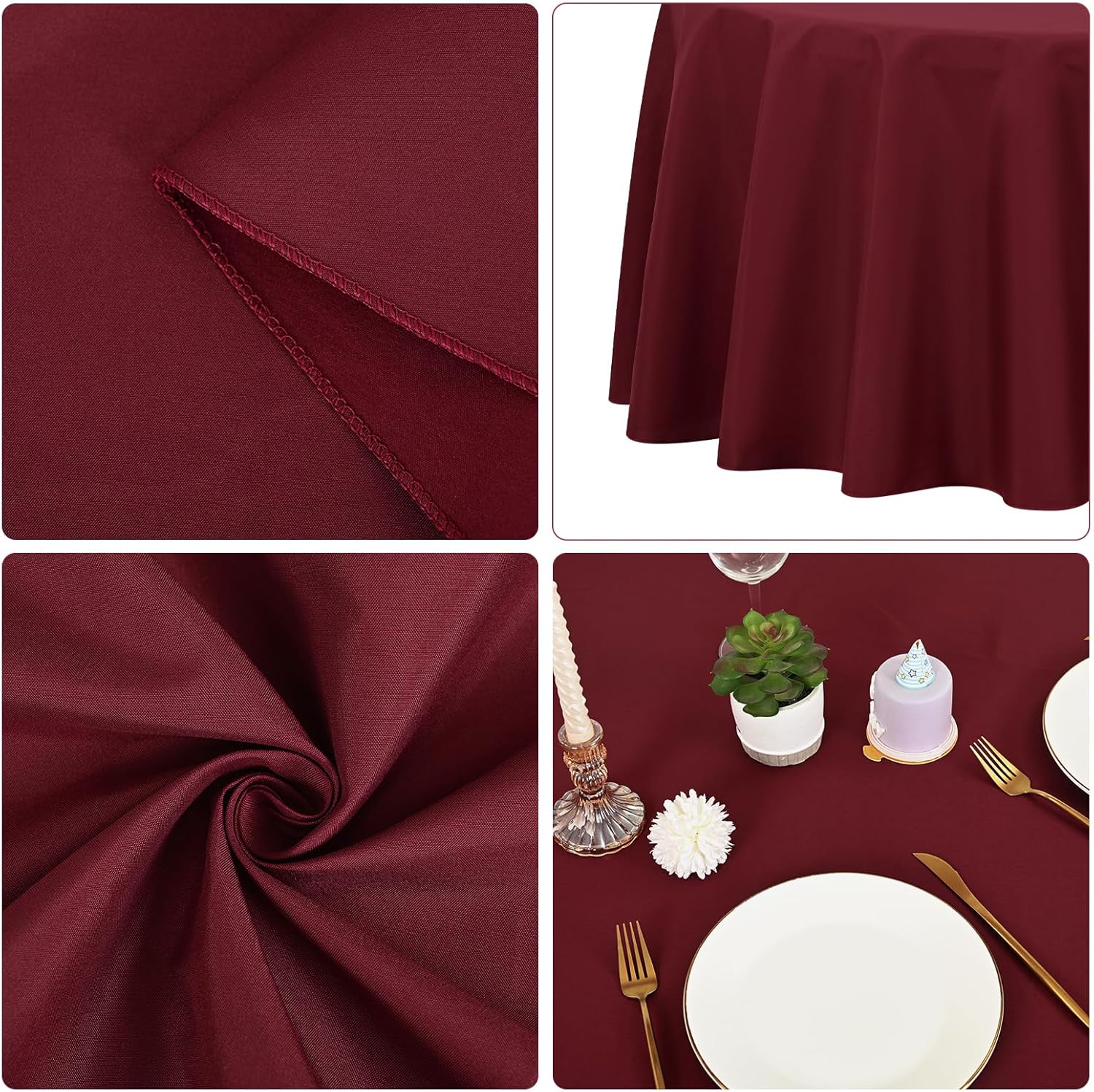 - đăPremium Tablecloth FabricsăYou can get 12 pieces 90 inch Burgundy round tablecloth, our tablecloth is made of soft 100% premium polyester fabric, polished look. These materials are as skin-friendly as they are environmentally friendly. Protect and decorate your tables.