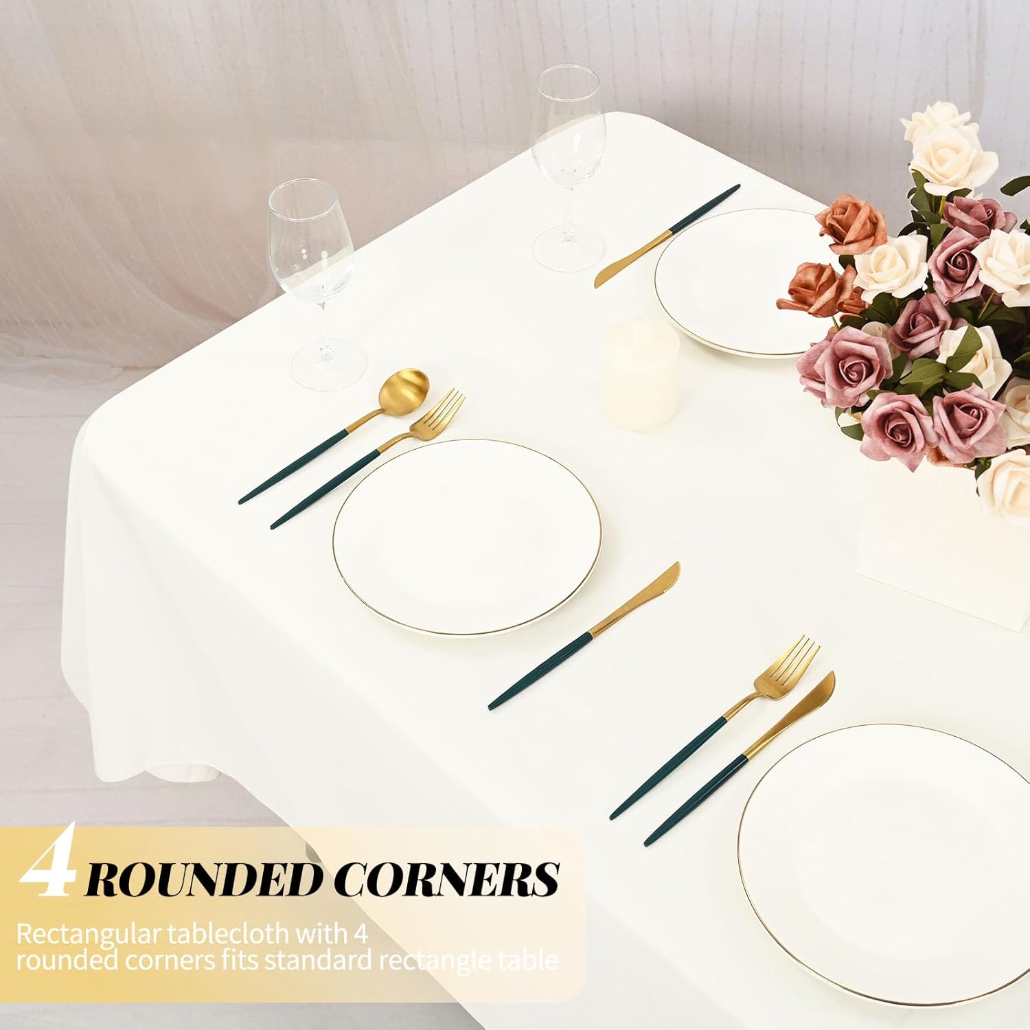 12 Pack 60 x 126 Inch Rectangle Tablecloth Ivory Polyester Tablecloth for 8 Ft Rectangle Tables, Washable Fabric Table Cloth for Wedding Dining Table Buffet Parties Camping