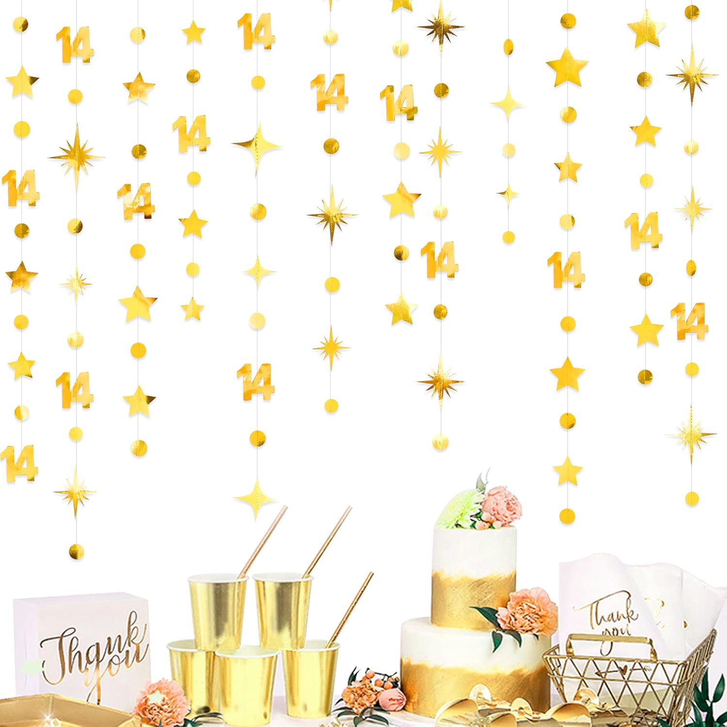 - 👍 Adorable party décor- our gold number 14 circle dot twinkle star garland kit is perfct for girls/boys 14th birthday party, 14 years old birthday decorations, 14th birthday decorations for girls, 14th birthday decorations for boys, 14 years loved party, 14 and fabulous party, cheers to 14 years party, 14th anniversary, happy 14th birthday decorations,wedding, bridal shower, birthday, Christmas, barbecue, home, engagement, christenings, fetes, etc