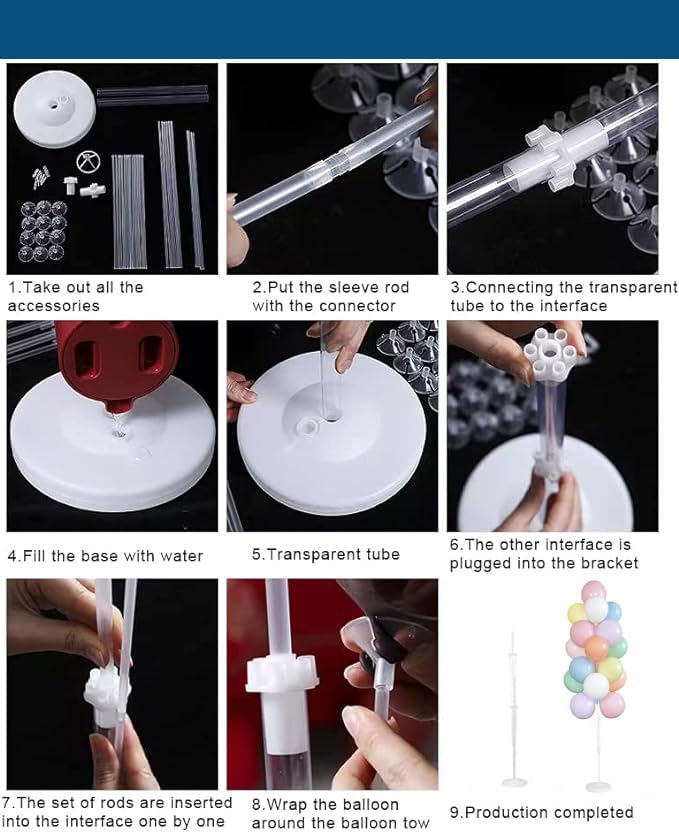 - 【Easy to Use】- Balloon stand kit is easy to assemble, you can assemble it in A Few Minutes, and very easy to disassemble and reuse. If You Want to Put This Outside With Slight Wind, We Recommend Using Double-Sided Tape on The Bottom of The Balloon Holder for Stability Outdoors.