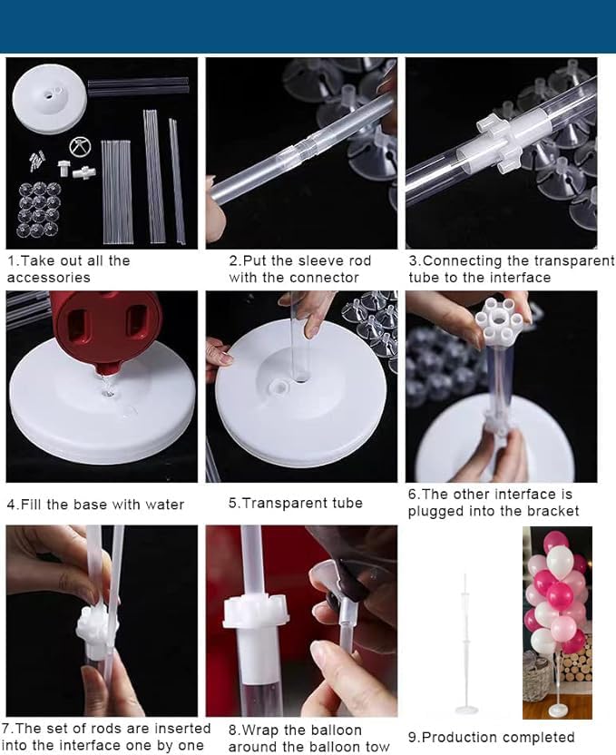- 【Easy to Use】- Balloon stand kit is easy to assemble, you can assemble it in A Few Minutes, and very easy to disassemble and reuse. If You Want to Put This Outside With Slight Wind, We Recommend Using Double-Sided Tape on The Bottom of The Balloon Holder for Stability Outdoors.