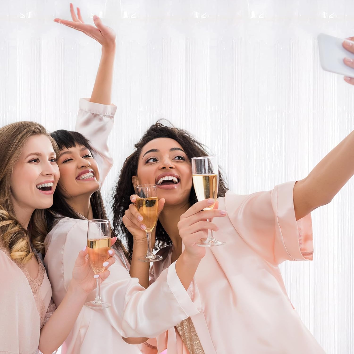 - 【Ideal Party Decoration】Show off your creativity and make your party stand out by using these white foil fringe curtains to decorate your party. You can hang them on a door or wall as a surprise entrance to the party, or pair them with LED lights, balloons, and banners to create a shiny party backdrop for different themes and occasions.