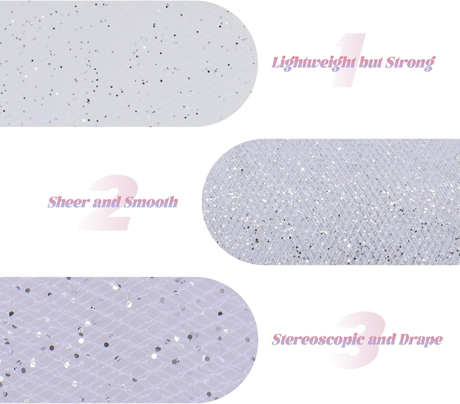 - 【DIY Application】- The sparkling tulle ribbon can perfectly be applied to your craft projects, handmade pendants, tutu skirt, DIY bows, chair bows, stair bows, costume making, chair sashes, sewing. The shiny fabric material would add some glitter elements to your designs.