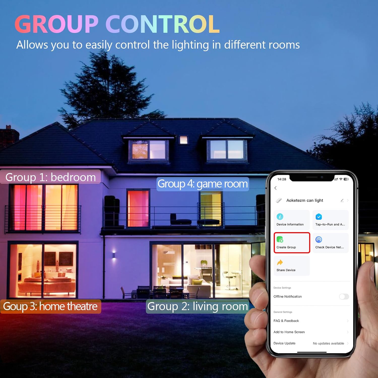 - 【DIY SCENE & MUSIC SNYC】Wide range of CCT and RGB color provides you with various color and brightness combinations, which helps you quickly switch between different scenes with the atmosphere you want. Besides, via Smart Life APP, lights will changes color with the rhythm of sound and music. A must for party time and gaming!