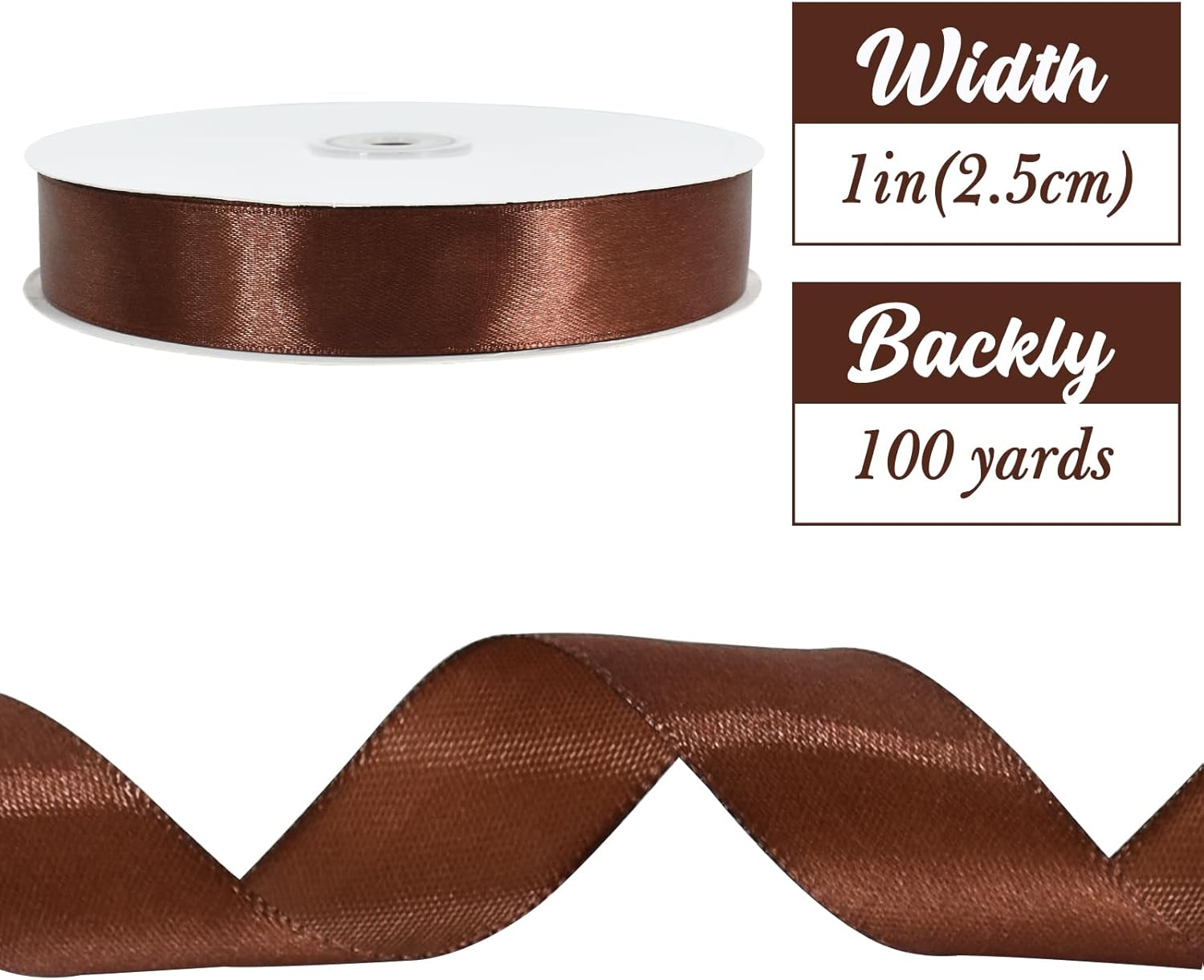TONIFUL 1 Inch x 100yds Coffee Brown Satin Ribbon, Thin Solid Color Satin Ribbon for Gift Wrapping, Crafts, Hair Bows Making, Wedding Party Decoration, Invitation Cards, Floral Bouquets, Christmas