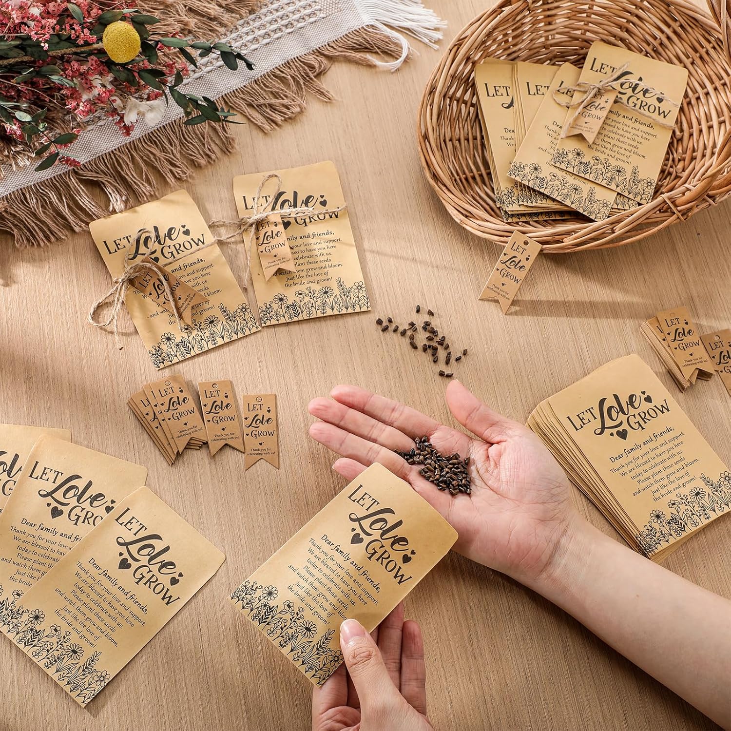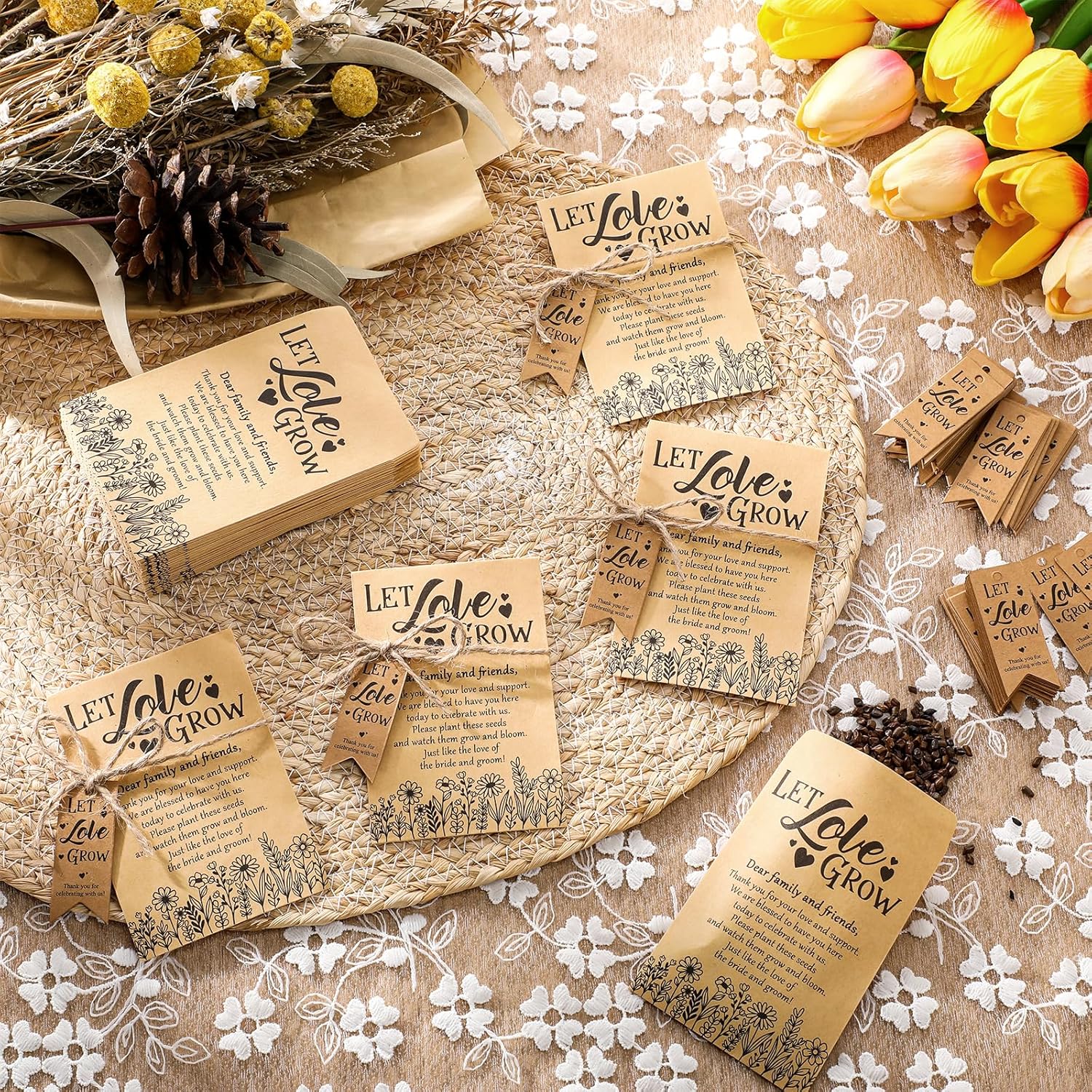 200 Sets Let Love Grow Wedding Favors for Guests Wedding Thank You Gifts Bulk Include Flower Seed Packets Tags and Hemp Ropes Craft Envelops for Bridal Shower Engagement Party Favors